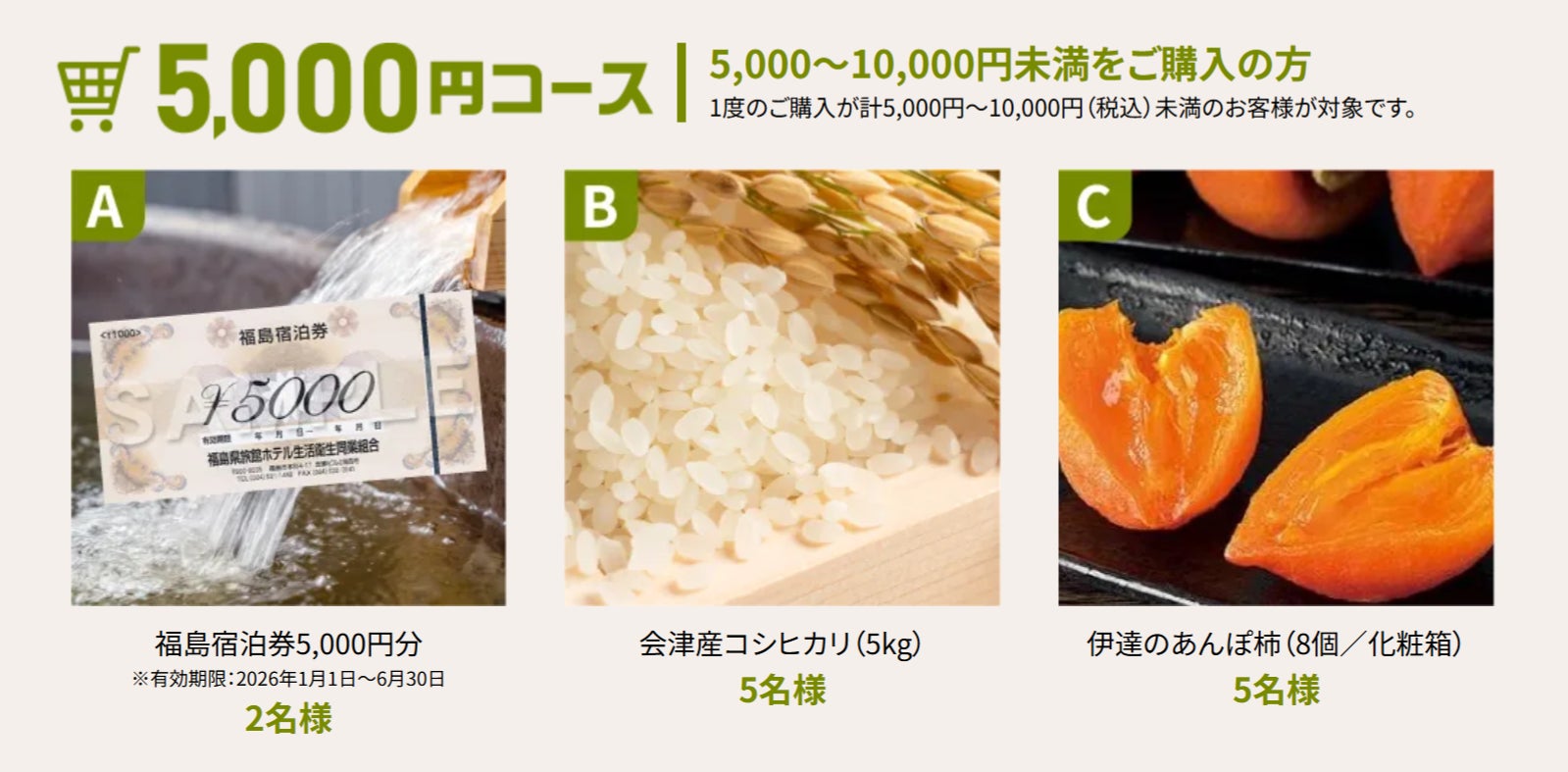 A賞:福島宿泊券5,000円分 2名様 ※有効期限:2026年1月1日~6月30日