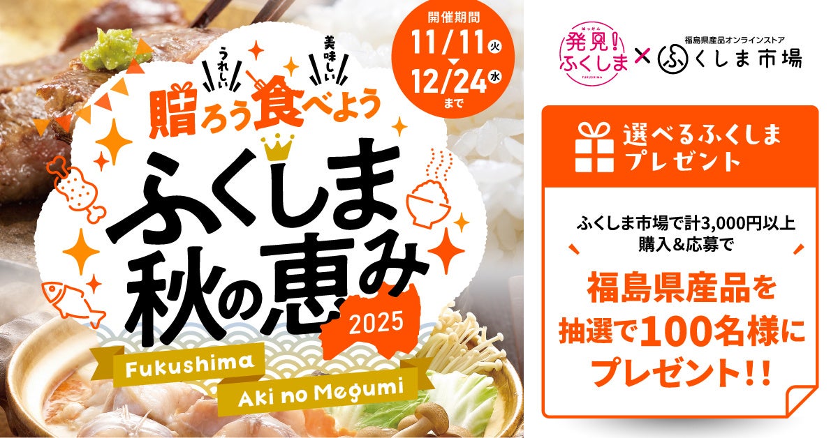 株式会社スペースワン(本社:福島県郡山市)は、2025年11月11日(火)~2025年12月24日(水)の期間中、東京電力ホールディングス株式会社が福島県産品のおいしさや魅力発信を目的として開催する「贈ろう 食べよう ふくしま秋の恵み2025」を受託運営しています。