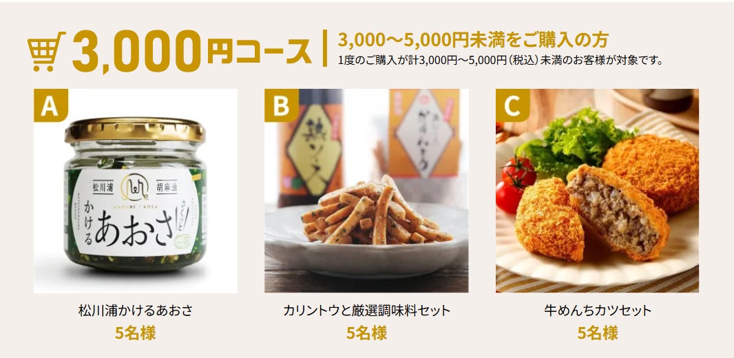 ※1回のご注文で税込3,000円~5,000円未満のお客様が対象