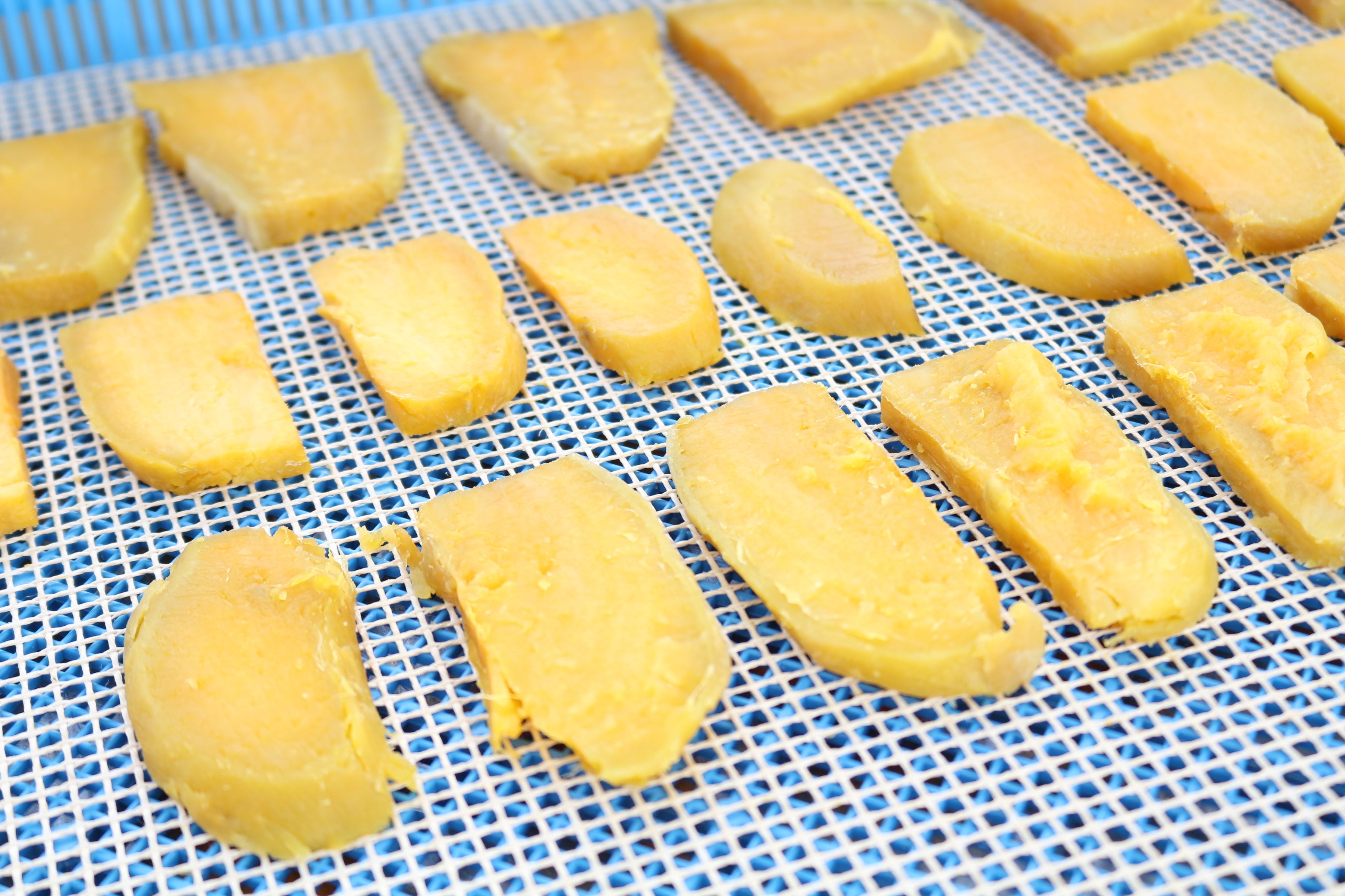 原料となるサツマイモは、「あまはづき」「安納芋」「紅はるか」の3種類をその時期に最もおいしい品種を厳選して使用。「あまはづき」は今回初めて使用しており、糖度が高く、ねっとり感が特徴です。「安納芋」は甘みと独特のうまみ、そしてオレンジ色をしています。「紅はるか」はサツマイモの中でもとても強い甘みに加え、サツマイモの雑味が少ないのが特徴です。半生干芋にする際は、サツマイモの特性を考えながら安定的なおいしさとなるように商品開発を進めています。