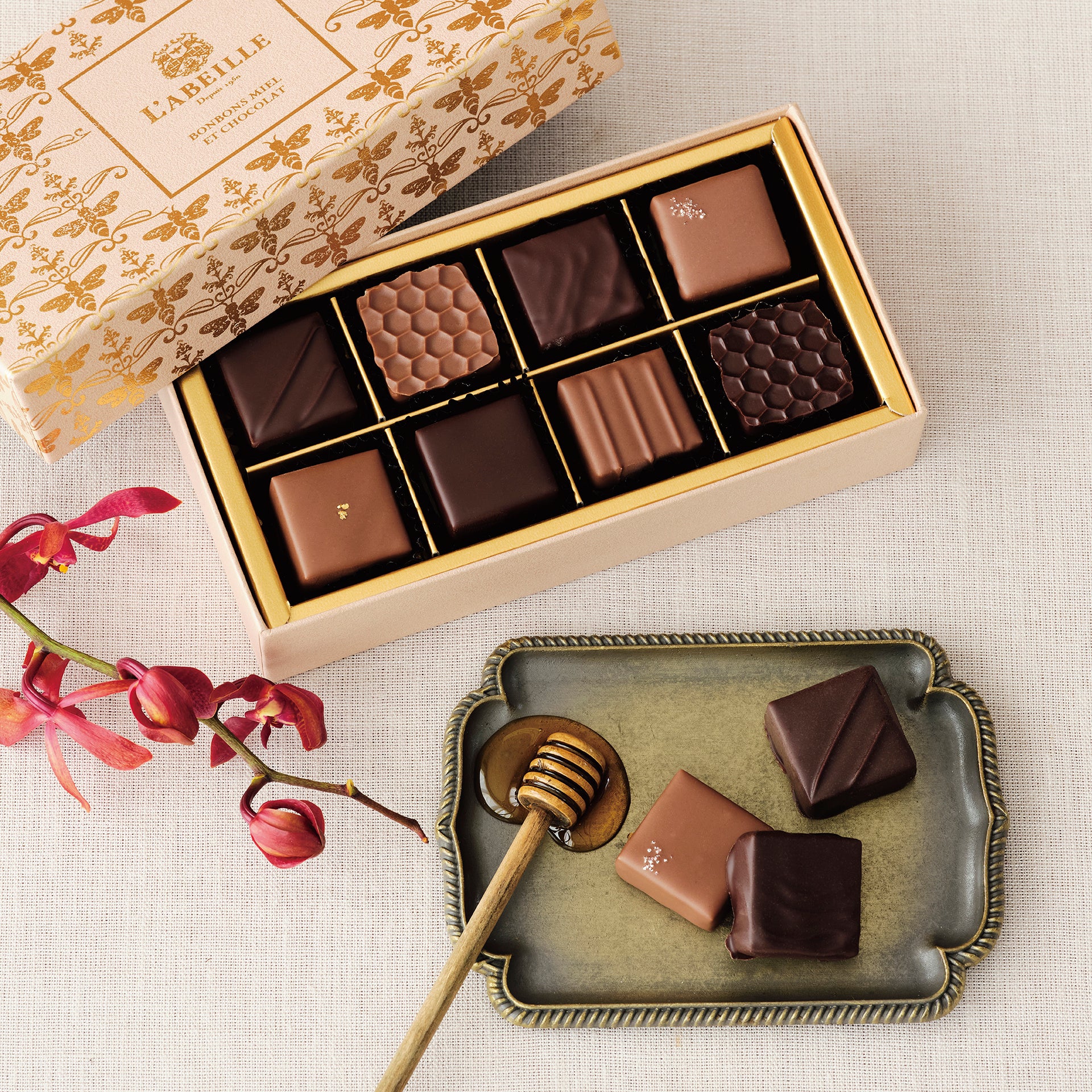 ■商品説明:はちみつの個性を楽しむ特別な一粒。ラベイユハニーを贅沢に閉じ込めたラベイユオリジナルのボンボンショコラ。世界12 か国80 種類以上のはちみつの中から、チョコレートと相性の良いはちみつを厳選し、特別な製法で仕上げた上質な“くちどけ”と“なめらかさ”が特徴です。余計な素材を加えず作られたガナッシュは、はちみつの華やかな香り、ほろ苦い味わいなど、一粒ごとに異なる個性を際立たせます。ラベイユハニーならではの、はちみつとチョコレートのマリアージュをお楽しみください。
