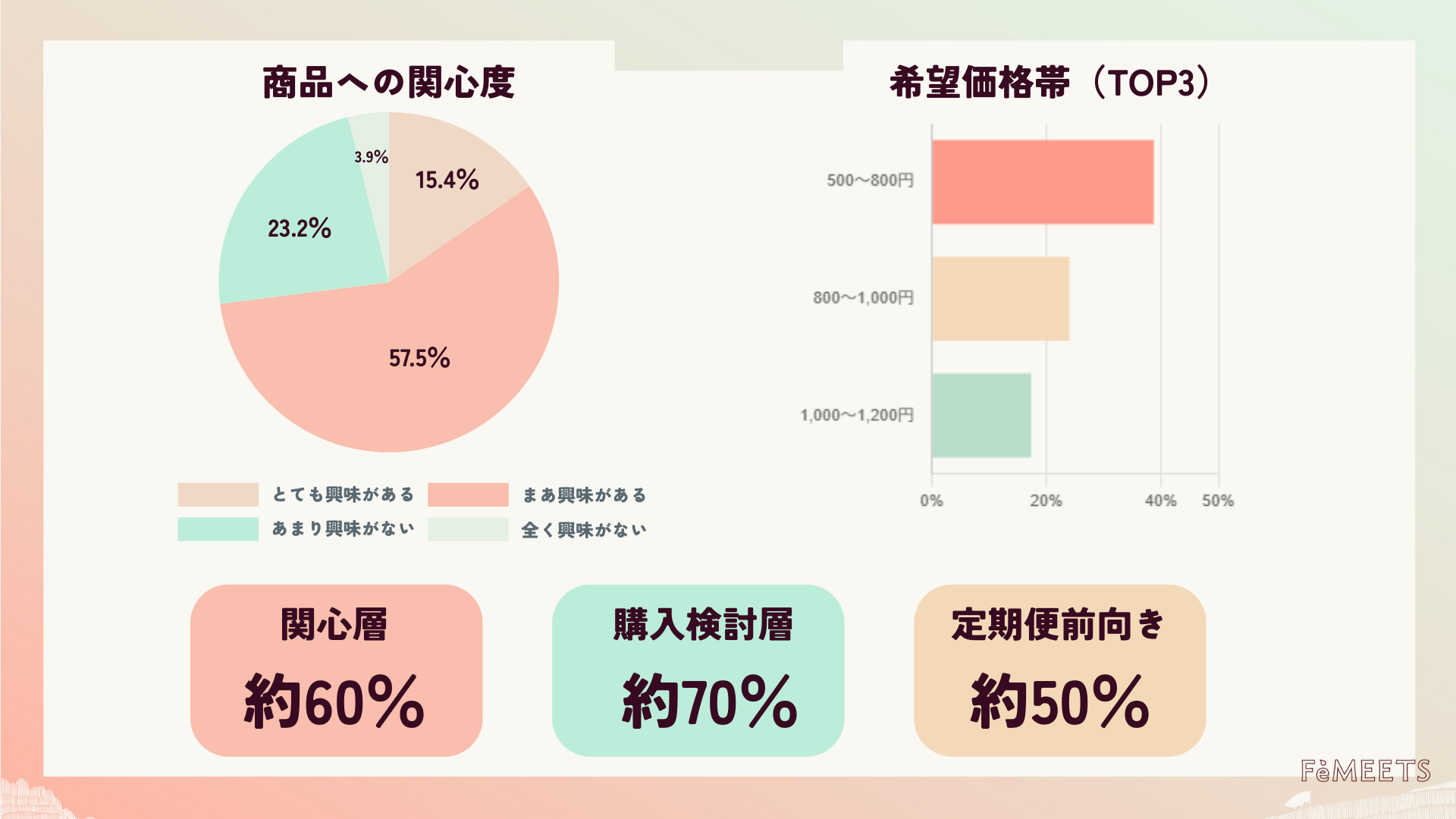 「約6割が商品に興味、価格帯は500〜1,000円(200gあたり)が中心」