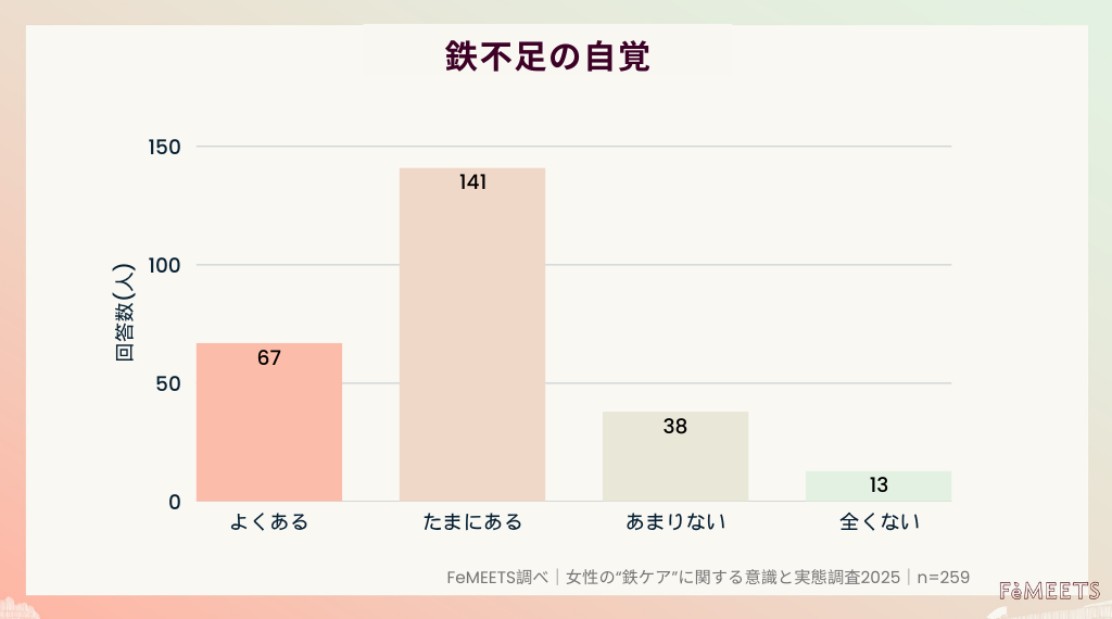 多くの女性が日常的な不調を感じており、鉄ケアを意識するニーズはすでに高い状態にあります。