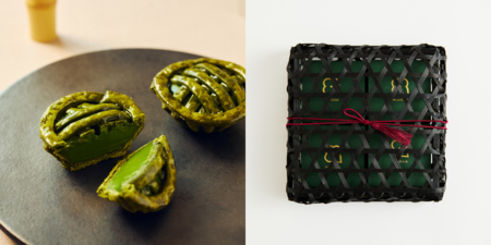京都府宇治の老舗茶園「丸利吉田銘茶園」の抹茶をたっぷりと使用した濃厚なテリーヌを、帝国ホテルで長く愛される「ブルーベリーパイ」へオマージュを込め、格子模様に焼き上げたサクサクのパイ生地の中に閉じ込めました。