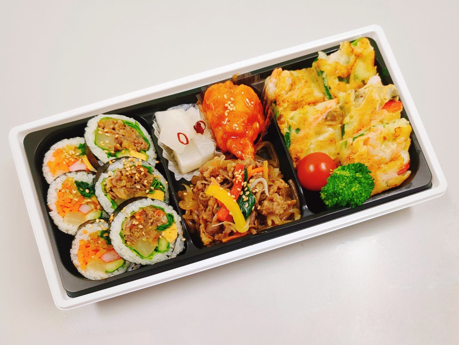 キンパ(韓国海苔巻き)、チヂミなど、野菜をたっぷり使った体にやさしい韓国家庭料理のお弁当・お惣菜ショップの「韓美膳エクスプレス」。野菜がたっぷり摂れるキンパ、チキン、チャプチェなど韓国の人気料理のおいしいところを詰め込んだ、人気のお弁当です。