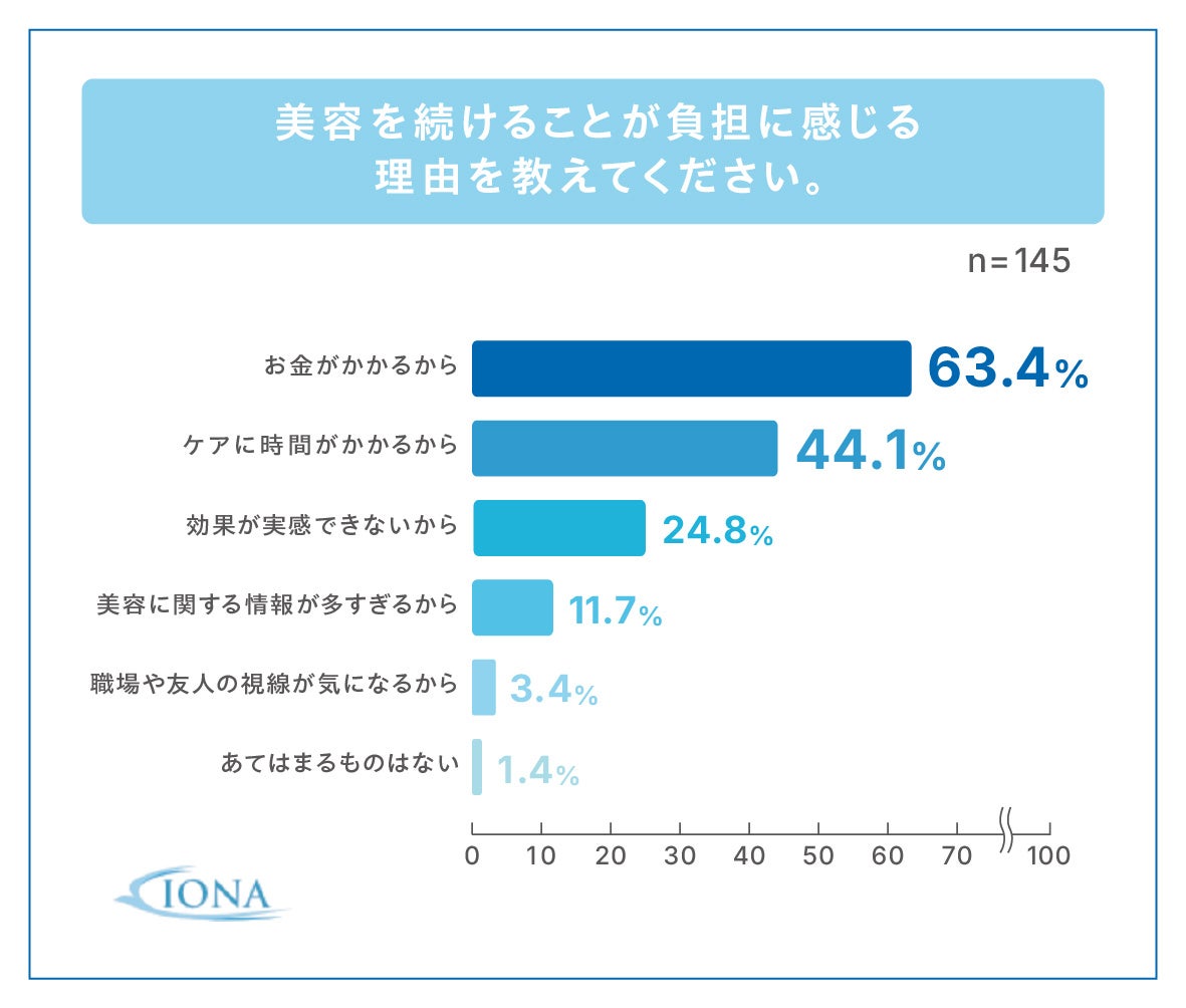 美容で「自分に満足できない」と感じる女性は約7割。美容を続けることが負担に感じる理由として、「効果が実感できない」「ケアに時間やお金がかかる」といった回答が目立ちました。