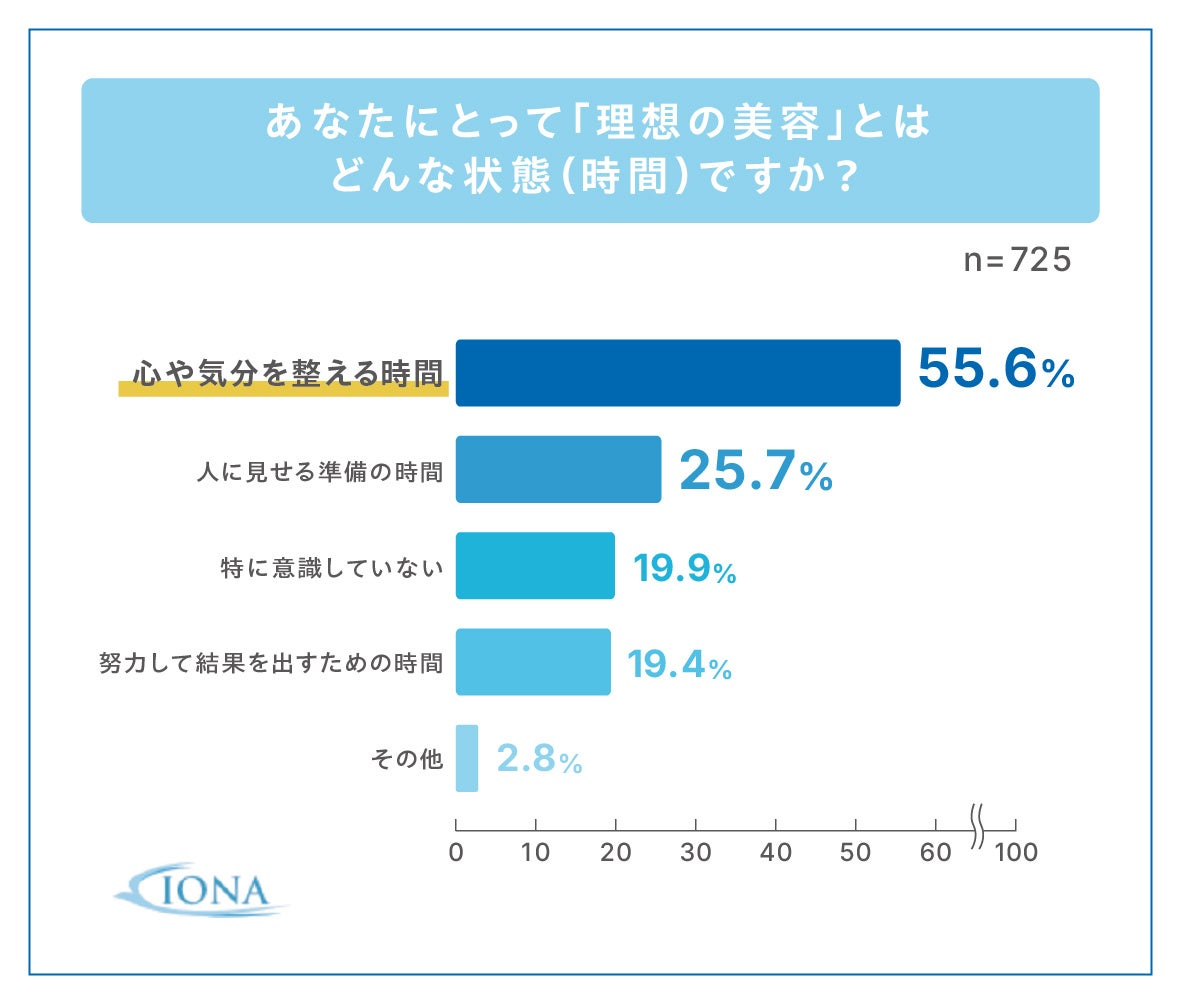 理想の美容としては「心や気分を整える時間」が半数以上で最多。今後大切にしたいことでは、「続けやすさ」「心が癒される・リラックス」「無理をしないこと」がほぼ半数を占めています。現代女性の美容価値観は、義務感のある“頑張る美容”から、自分を満たす“癒しの美容”へとシフトしていることがうかがえます。