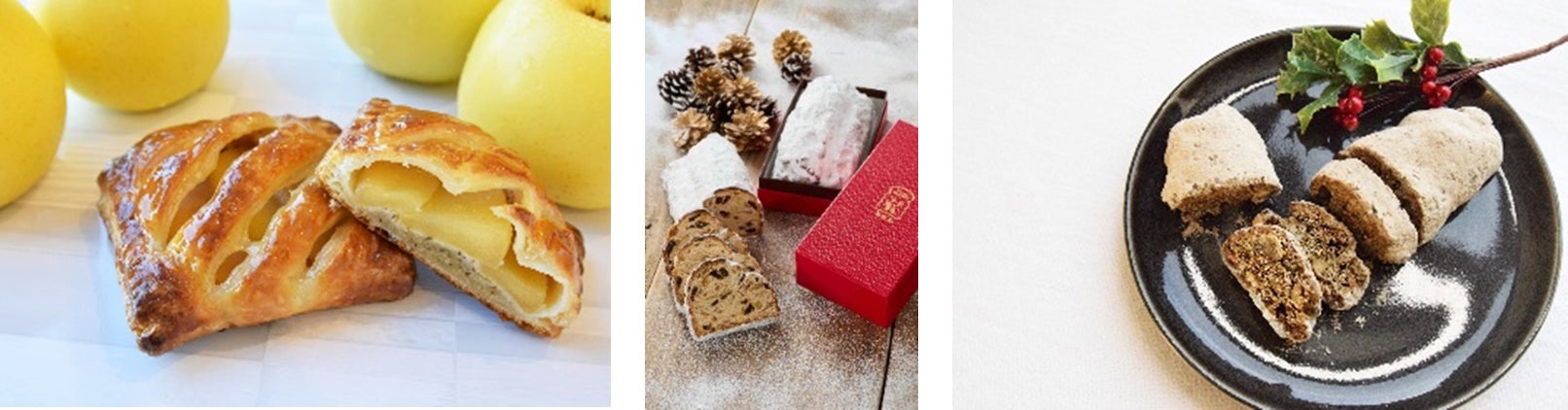 「ブランジェ浅野屋」の代表スイーツの一つでもある、ドライフルーツをふんだんに加えたドイツ伝統のクリスマス菓子『浅野屋クリストシュトレン』や、ほうじ茶生地にオレンジピール、マカダミアナッツ、丹波の黒豆、ほうじ茶チョコ、マロングラッセを練りこんだ『ほうじ茶スティックシュトレン』、さらに長野県産の黄色りんごを贅沢に使った『信州産食べごろりんごのアップルパイ(シナノゴールド)』などをワンプレートに盛り付けた、冬の信州の魅力を楽しみ尽くすことのできるここでしか味わえない一皿です。