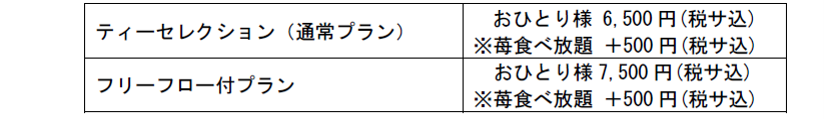 販売価格  アフタヌーンティー/イブニングハイティー共通
