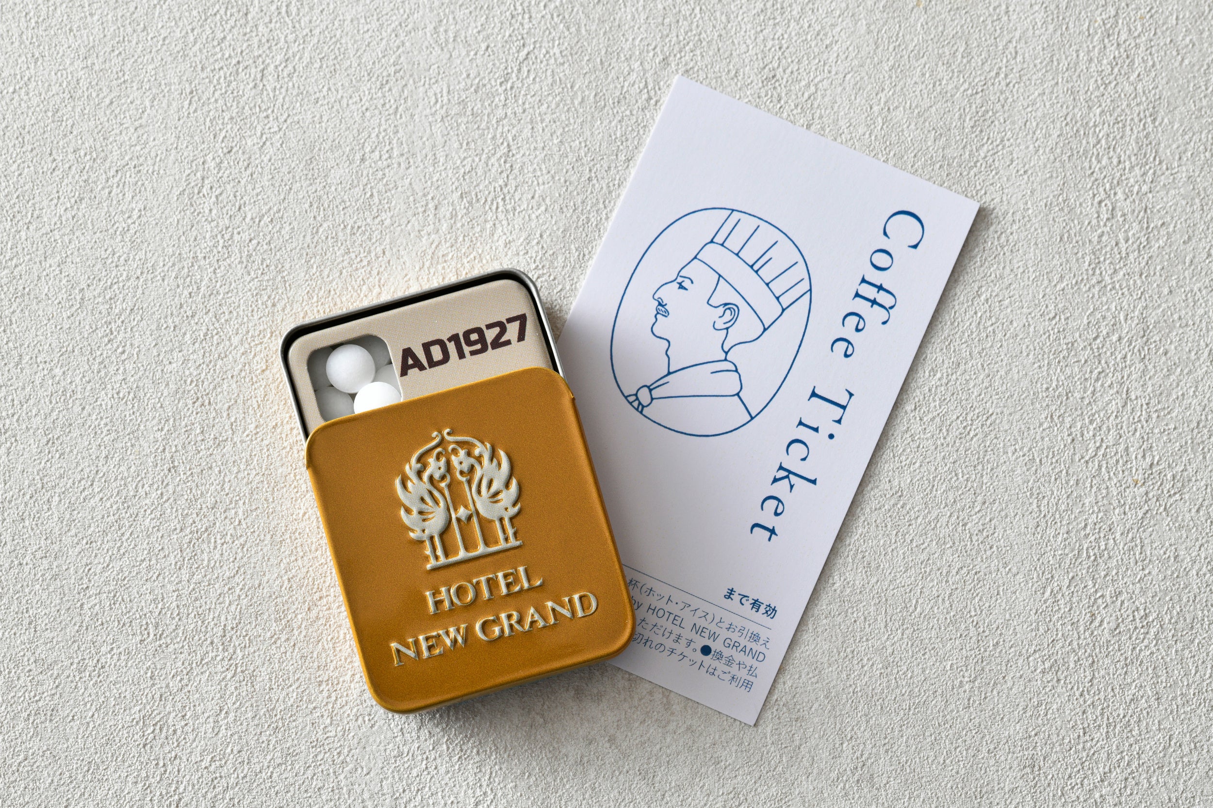 ホテルニューグランドのシンボルマークをデザインした新商品「ミントタブレット」