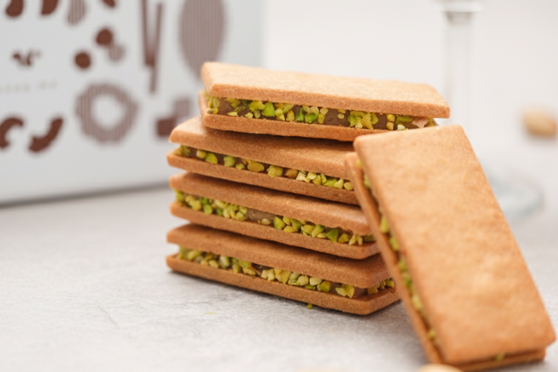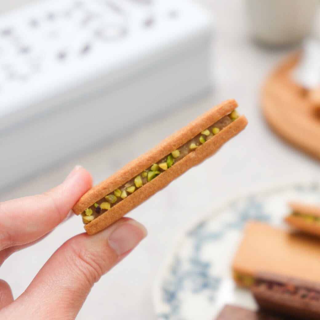サイドにあしらったピスタチオが、味わいだけでなく見た目にも華やかなアクセントを添えています。