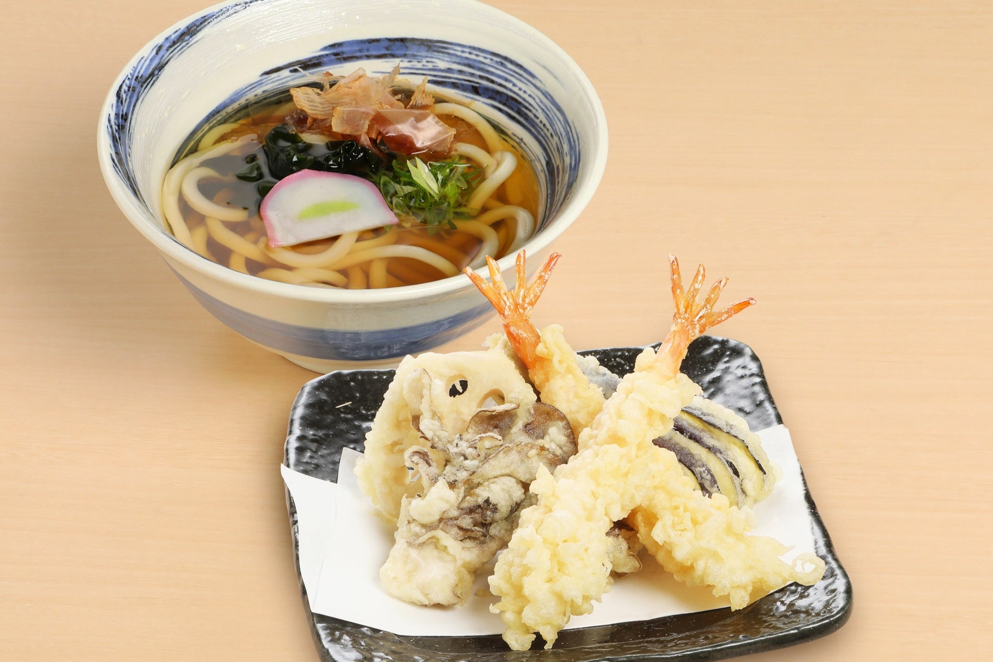 衣のサクッとした食感と素材の旨みを、杵屋自慢のうどんとともにお楽しみください。