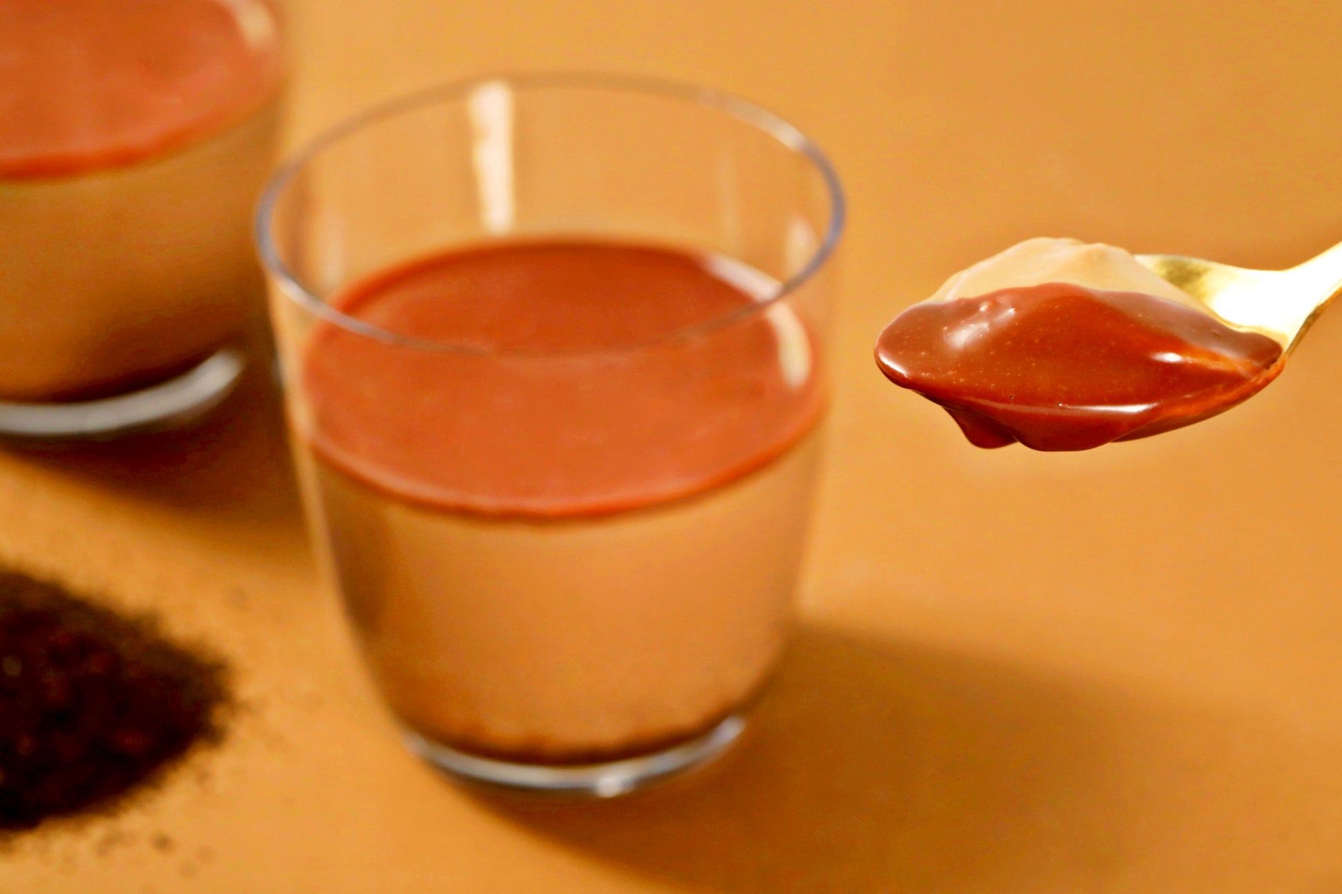 の華やかな香りが広がる「なめらかプリン」に、ベリー風味のチョコソースを重ねました。