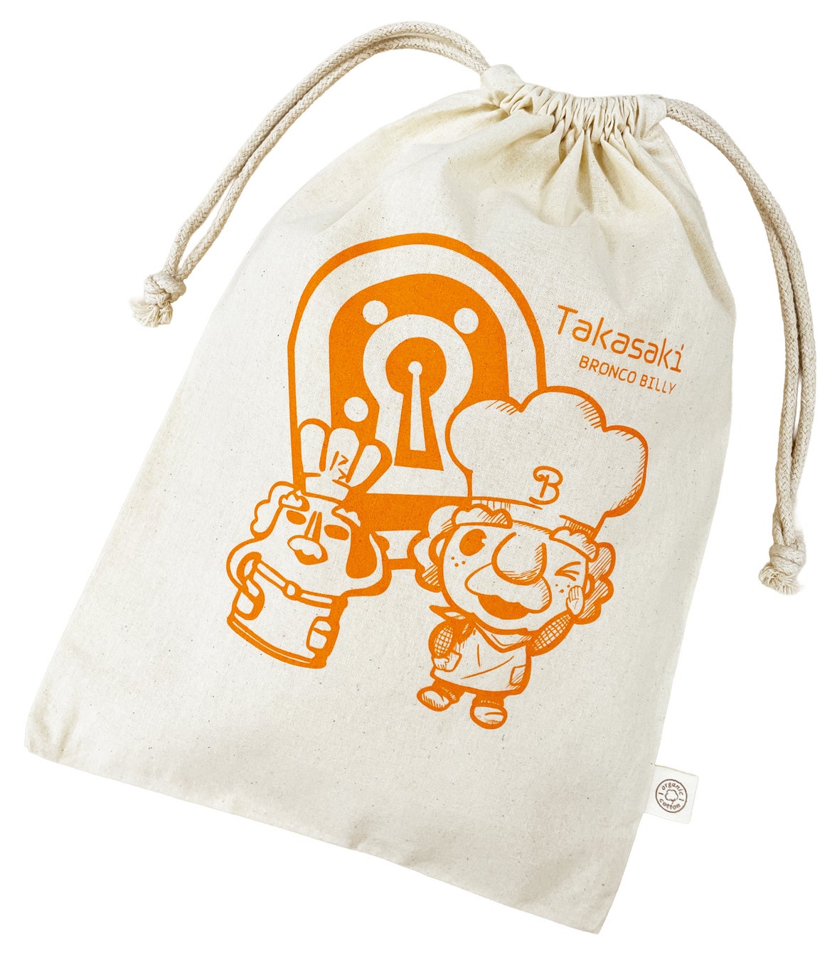 また、2025年はブロンコビリー全店で140店舗突破を記念して、高崎店でしか手に入らないオリジナルデザイン巾着をプレゼントいたします。高崎市の有名な古墳と一緒に描かれているのは、オリジナルキャラクターのブロンコおじさんと、かわいいはにわです。ここでしか手に入らないオリジナル巾着は、先着1,000名様限定です。