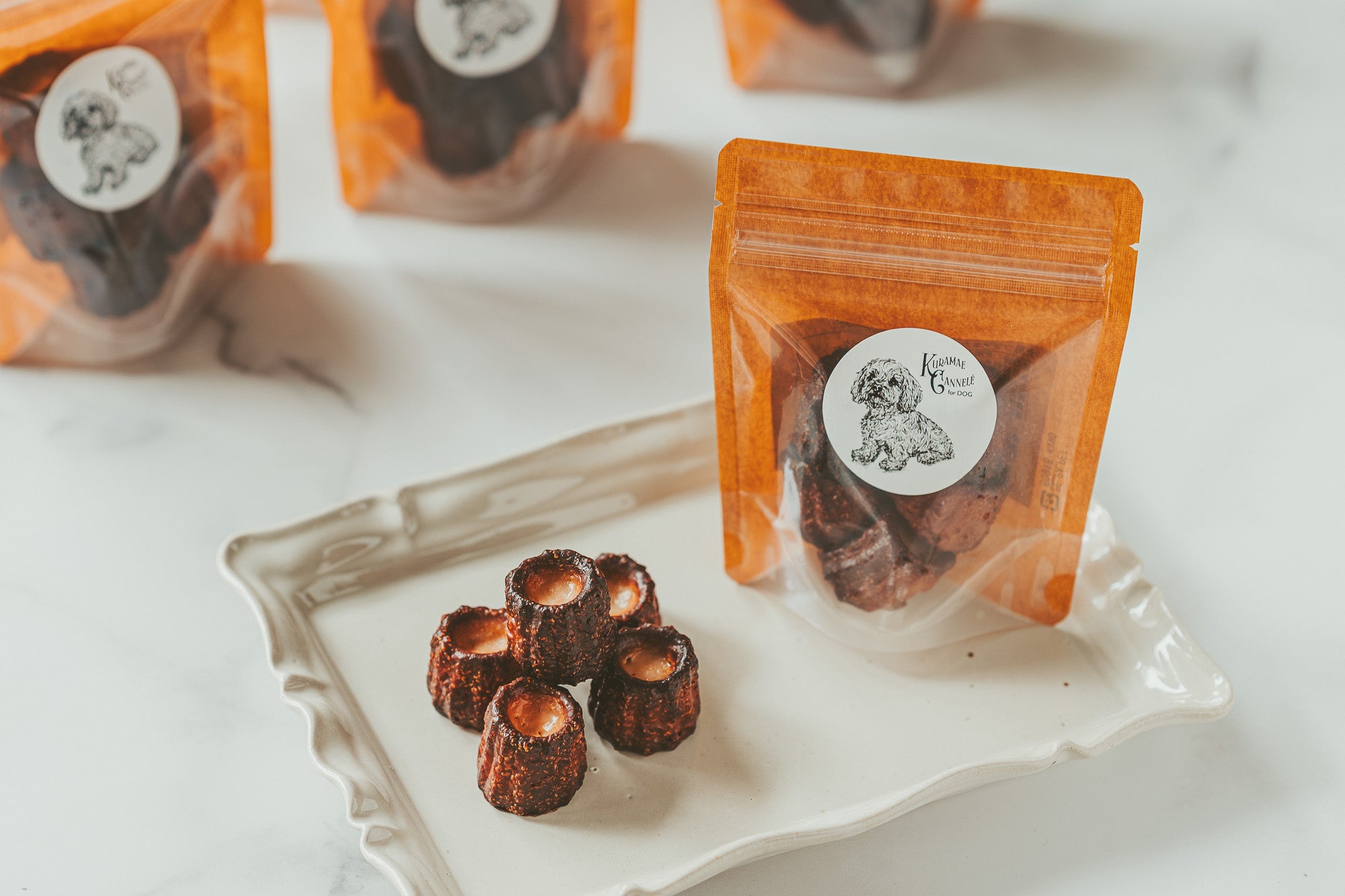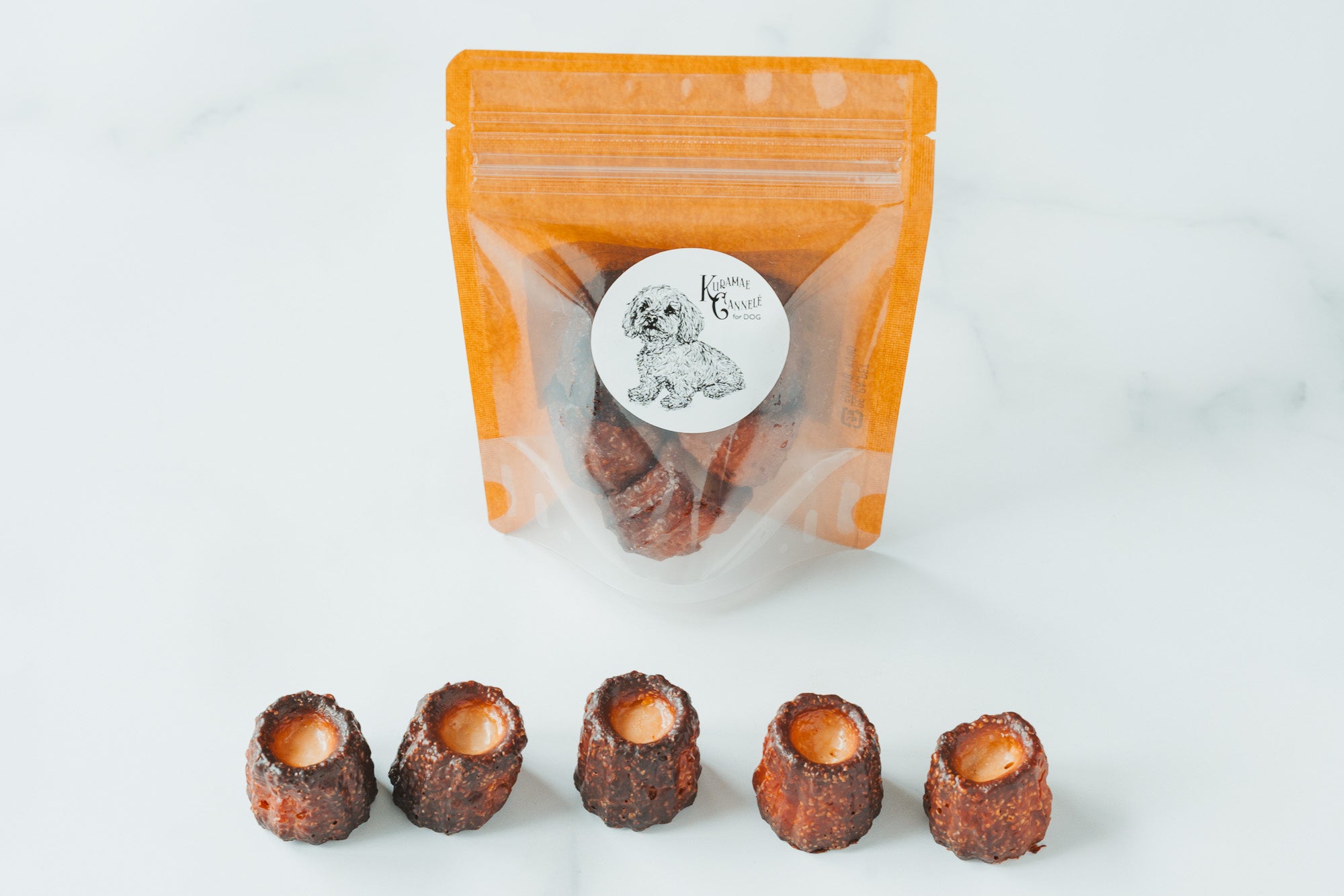 人用のカヌレづくりで培ってきた“焼き”へのこだわりを活かしながら、わんちゃんの体に配慮した、KURAMAE CANNELÉならではの愛犬用カクラマエカヌレです。