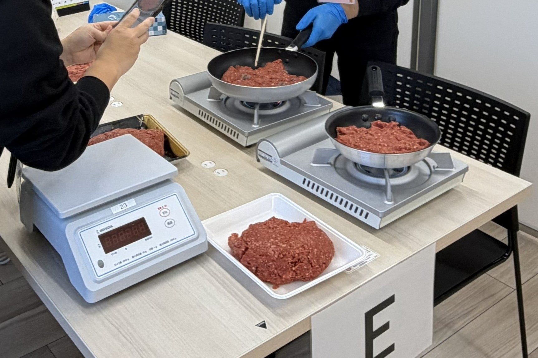 ロピアの人気ハンバーグを自宅でも味わってほしい、との思いで春日市のふるさと納税に新登場しました。より家庭で楽しんでいただけるよう、牛肉の部位や比率を変えた5品をロピアの精肉部が試作。ロピア、春日市、弊社の担当者で試食会を行い、やわらかさや食べやすさなども踏まえて、返礼品化するハンバーグ計4種類が決定しました。