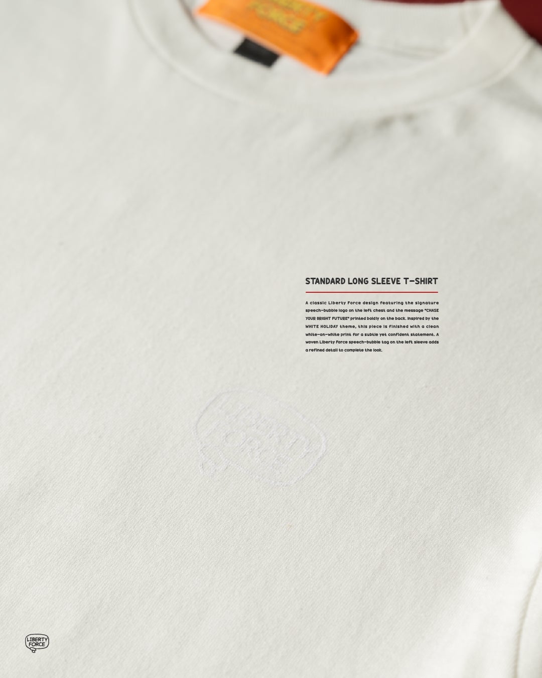 「LIBERTY FORCE」のアパレル商品が約20種類陳列されます。また、今回のコラボレーションに合わせて、白ボディ×白プリントの新作ロングTシャツを発売します。コラボ商品をご購入いただいた方には、「LIBERTY FORCE」のステッカーをプレゼントします。