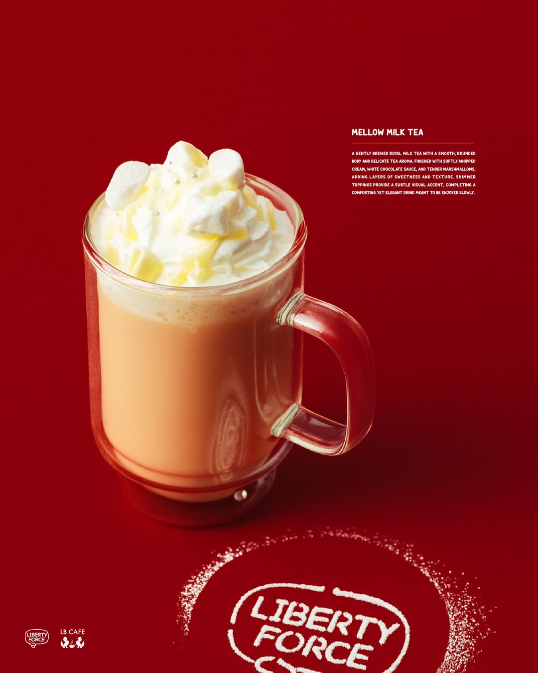 期間中は、白をテーマにしたホリデー限定のコラボスイーツ3種と、アパレルブランド「LIBERTY FORCE」によるデザインの白ボディ×白プリントの定番ロングTシャツが登場し、特別な冬のホリデーをご提供します。