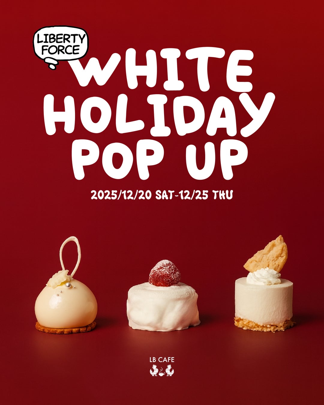 株式会社ライテック(本社:東京都台東区、代表取締役:廣田拓郎)は、2025年12月20日(土)から12月25日(木)までの6日間、沖縄県那覇市の国際通りにある「LB CAFE那覇国際通り店」にて、アパレルブランド「LIBERTY FORCE」とのコラボレーションによる「WHITE HOLIDAY」をテーマにした冬限定のPOP UPイベントを開催します。