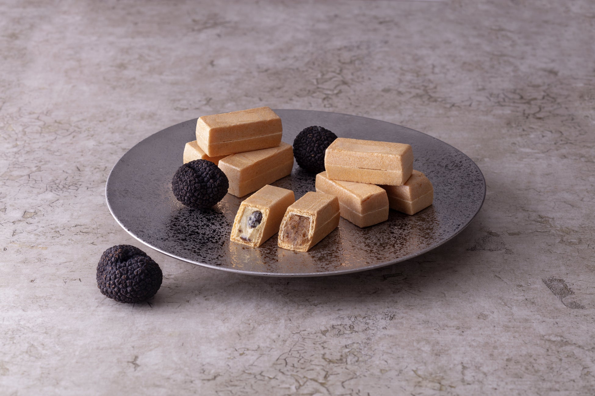 フランス料理店「Francais La Porte(フランセーズ ラポルテ)」の片岡竜也シェフが、レストランでも使用している世界三大珍味を贅沢に使用した「もなか×ケーキ」の新感覚スイーツ。高級トリュフの風味とチーズケーキの甘みが後引く「トリュフもなか」と、フォアグラ&ホワイトチョコに芳醇な味わいのラムレーズンをアクセントに加えた「フォアグラもなか」の2種類を、高級うるし箱仕立てのパッケージに詰め合わせました。