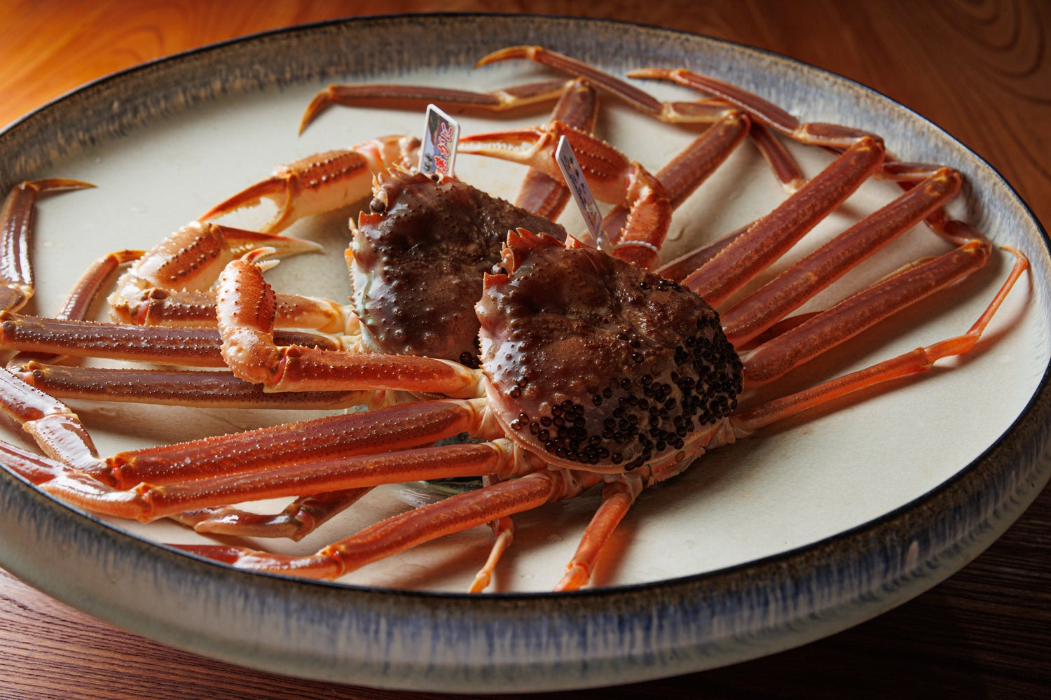 厳しい基準をクリアし、漁獲量にも限りがある最上級のブランド蟹を贅沢に使用した期間限定の特別コース。選び抜かれた松葉ガニの美味しさを余すことなくお楽しみいただけるよう、お二人様で約一杯の蟹をご提供いたします。