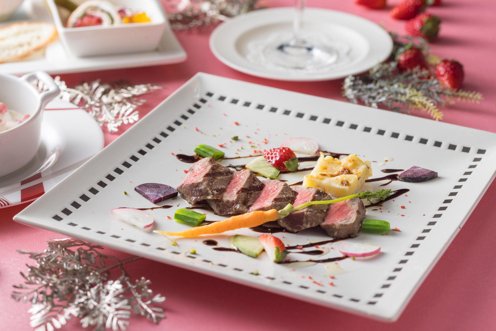 いちごを取り入れたお肉料理またはお魚料理がメインとして登場し、お好みに合わせてお選びいただけます。旬のいちごが引き立てる華やかな味わいを、ぜひお楽しみください。