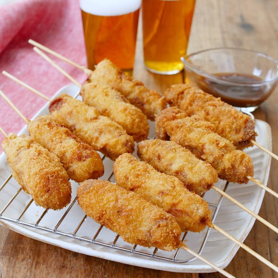 コスパのよさに加え、串にすることで食べ応えと楽しさを両立しています。バッター液を細長いグラスに入れる工夫も、日々の調理にすぐ役立つアイデアとして注目されました。