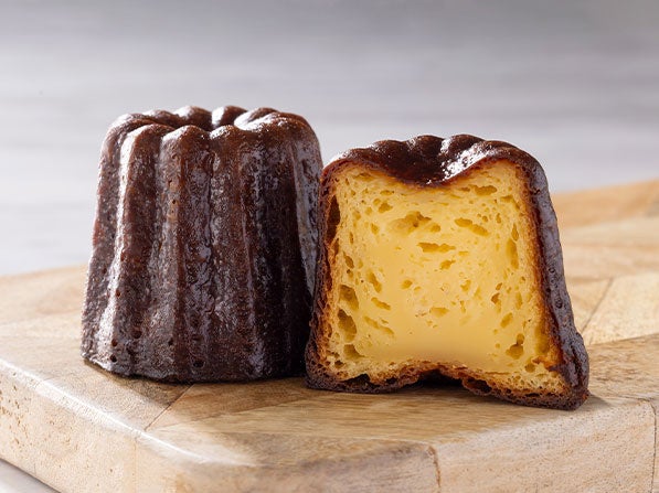 フランス・ボルドー発祥の伝統菓子で、ラム酒が香るモチモチ食感のカヌレです。香り豊かな「カヌレ・プディング」と、ラム酒を加えた生地を、表面がしっかりと色づくまで焼き上げたチョコレートの風味豊かな「カヌレ・ショコラ」の2種類をご用意いたしました。