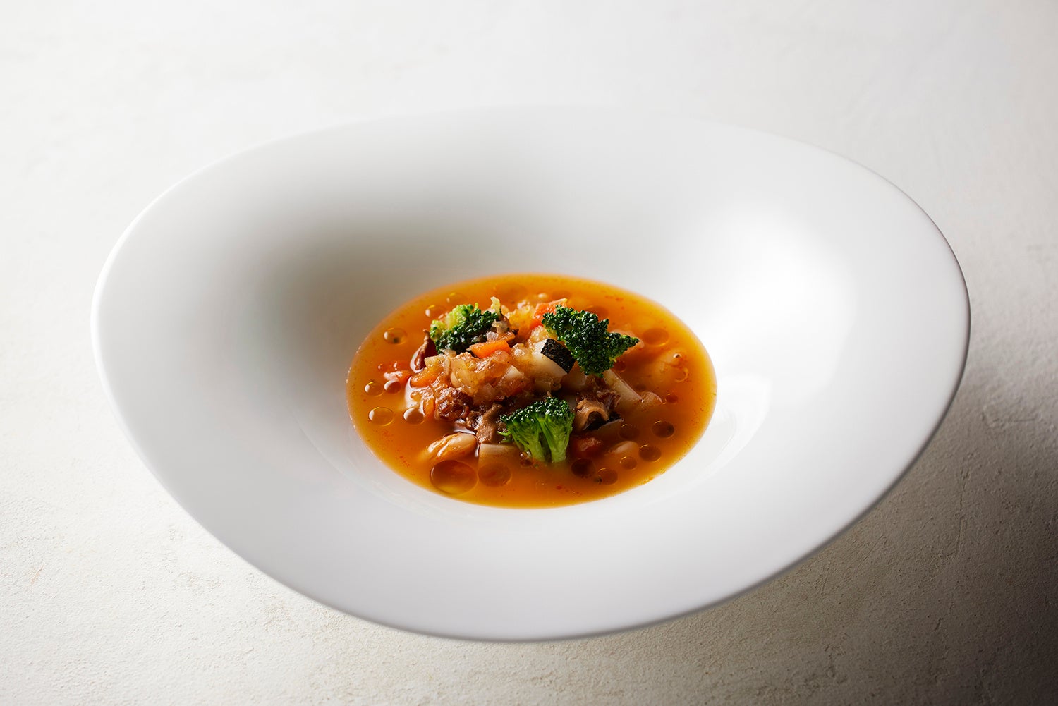 甘みの増す旬の野菜をコトコト煮込み、旨みがたっぷり溶け出したスープ。冬の野菜は栄養価もたっぷりで、心も体もほっとあたたまる味わいです。