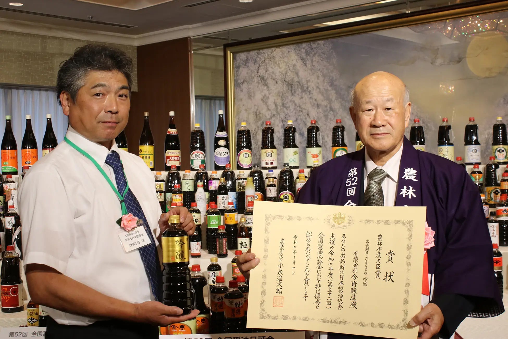 宮城県加美町の有限会社今野醸造(代表取締役社長:今野 昭夫)が製造する醤油「吟醸」は、第52回全国醤油品評会において最高賞である農林水産大臣賞を受賞しました(主催:日本醤油協会/後援:農林水産省)。同商品で7度目、蔵元として通算8度目となり、全国最多タイ記録を更新。全国303点の出品の中から選ばれた快挙です。