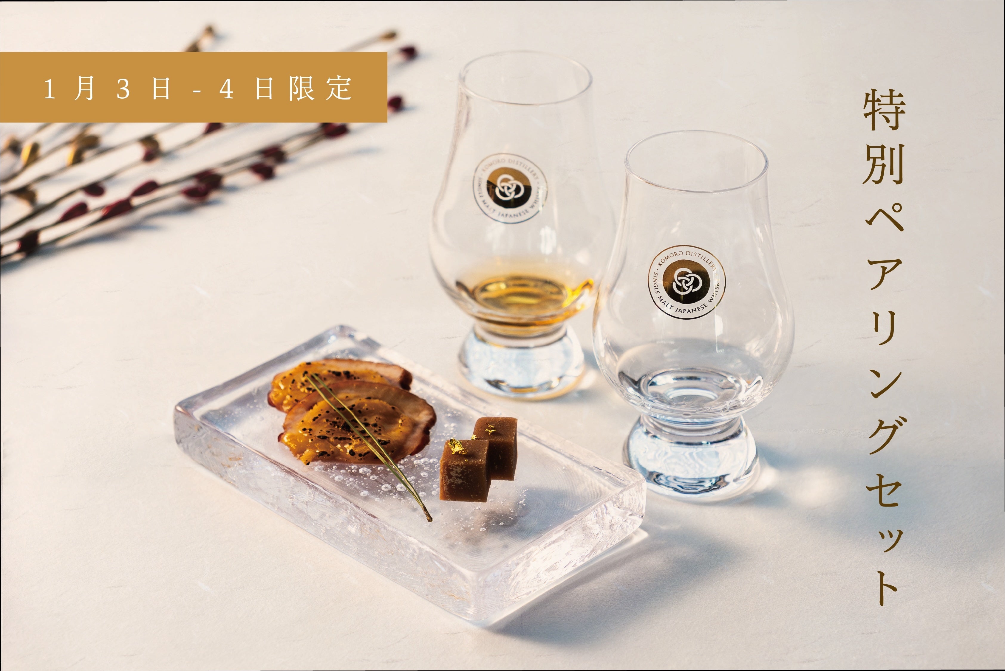 小諸蒸留所で冬季に製造されるピーテッド原酒2種と、新年の幸福を願う、日本ならではの食文化から着想を得たペアリングフードを組み合わせたセットです。