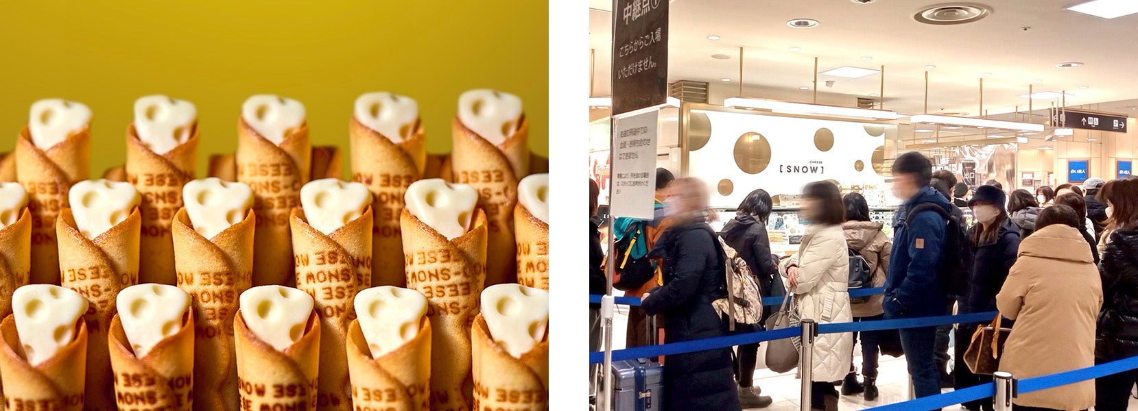 チーズの可能性を追求したチーズ菓⼦専⾨店として、2022年4⽉12⽇、⼤丸札幌店にオープンした[SNOW]CHEESE。世界に誇る4⼈の北海道チーズ先駆者達の監修から⽣み出される個性的なスイーツは、地元の⽅々や旅⾏者に新たな北海道土産として受け⼊れられ、開店以来、毎⽇100⼈以上の⾏列が続いており、⼤丸札幌店B1Fの和洋菓⼦売場スイーツNO.1売上商品となっています。