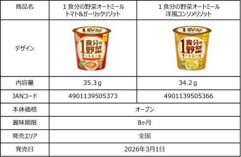 旭松食品株式会社(本社:大阪市、本店:長野県飯田市、社長:木下博隆)は、忙しい毎日でも美容と健康を叶えたい方に向けて、野菜とオートミールを一度に摂れる新商品『1食分の野菜オートミール』を2026年3月1日より全国発売いたします。本商品は、熱湯3分で完成する即席カップタイプ。手軽に食物繊維たっぷりの「オートミール」と「1食分の野菜」を同時に摂取できます。美容と健康を応援しつつ、環境にもやさしい“エシカルな食事スタイル”を提案します。