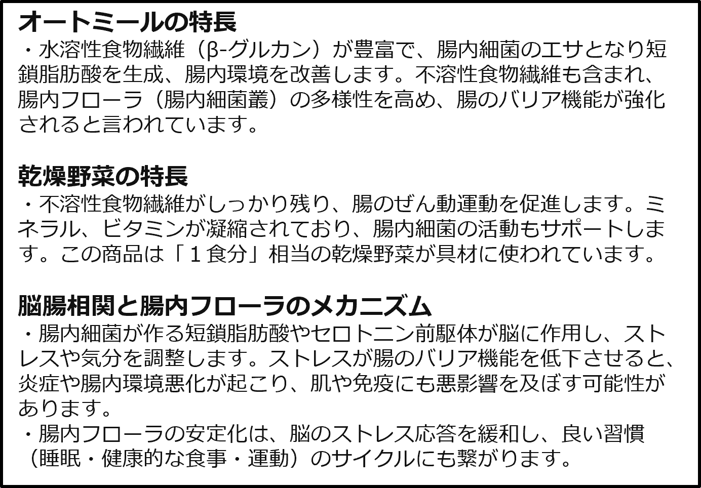 ▶野菜1食分+オートミールで美容と健康をサポート