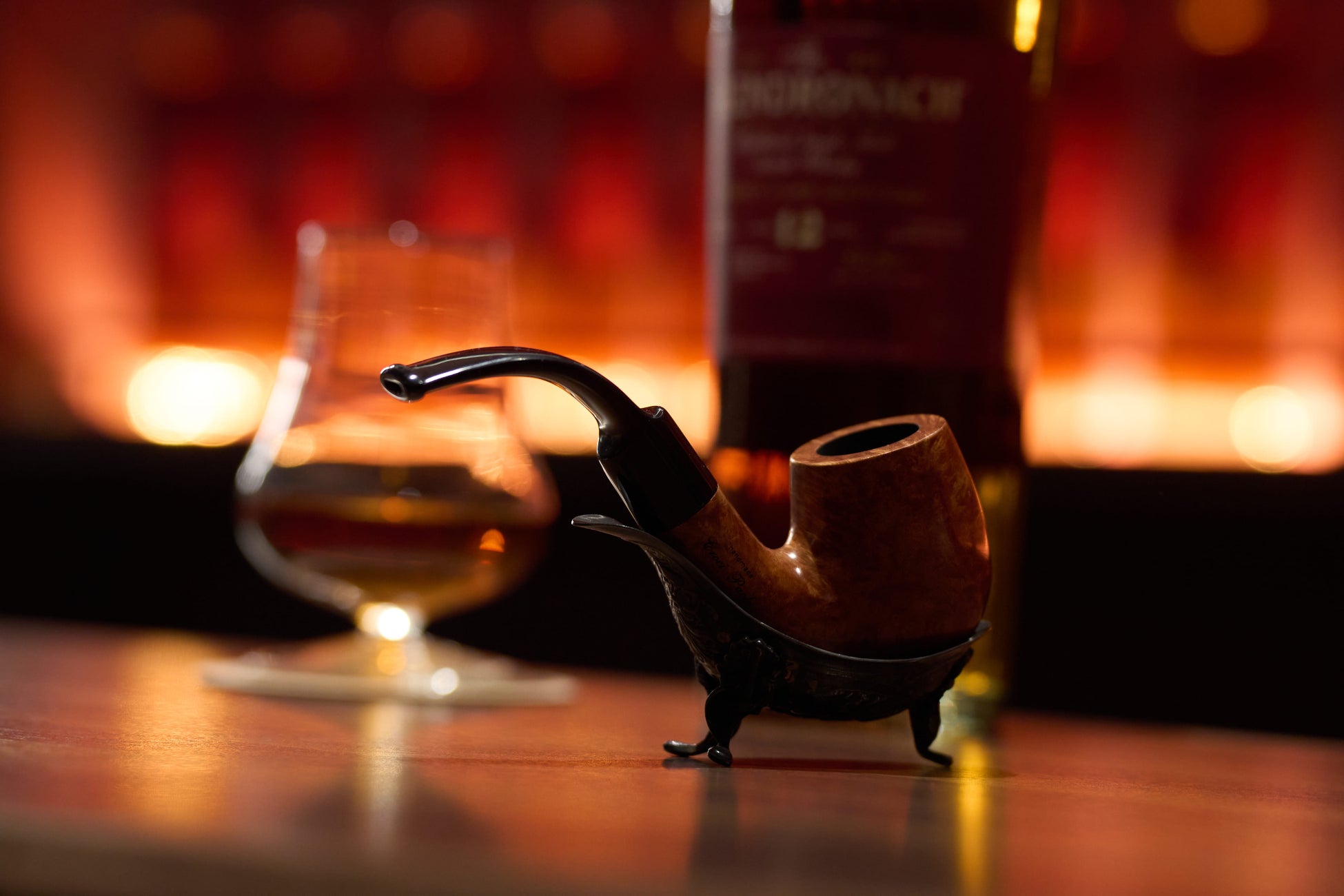 パイプシガーや葉巻、そして選りすぐりのお酒のラインナップ。