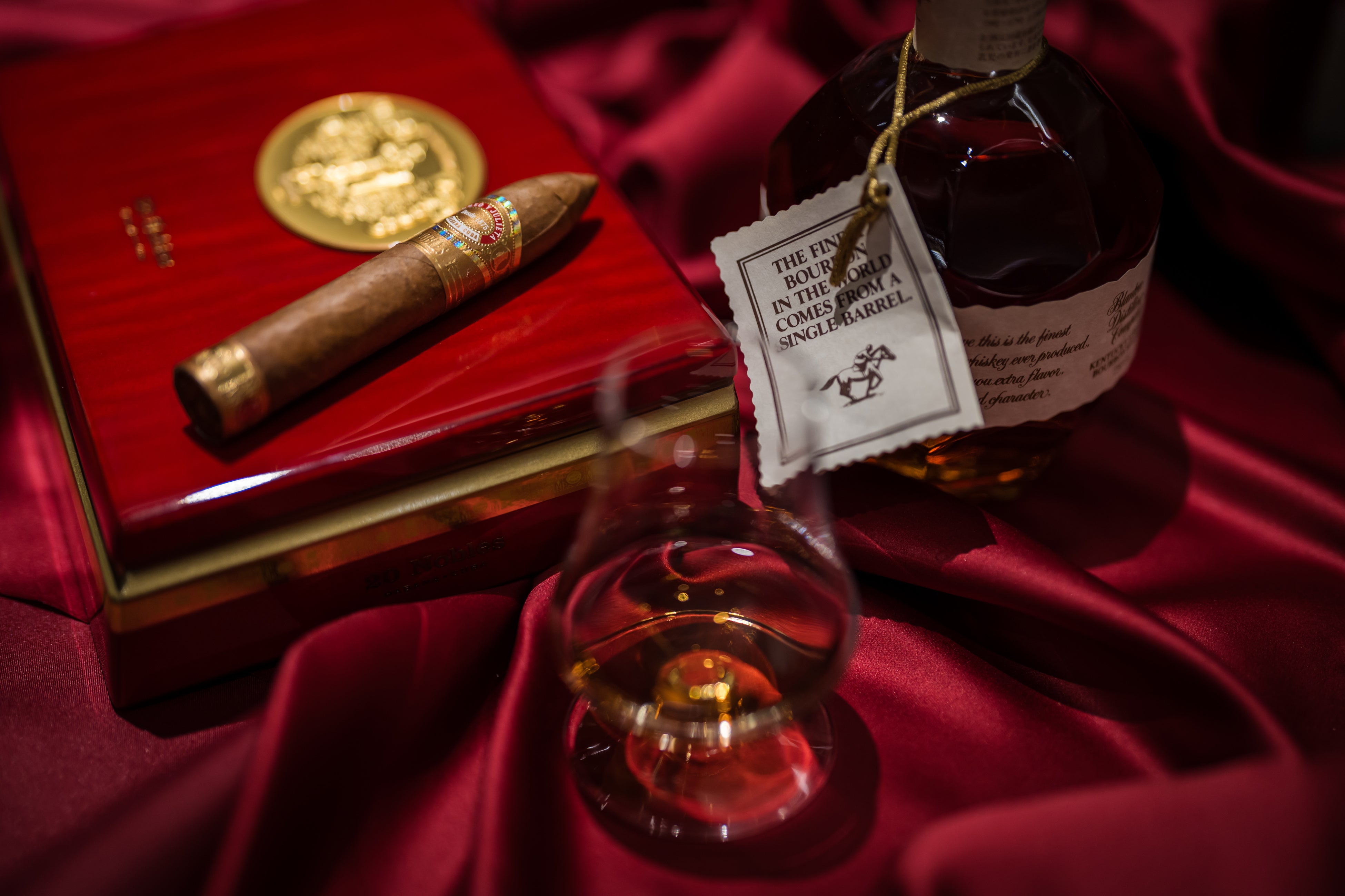 パイプシガーや葉巻、そして選りすぐりのお酒のラインナップ。