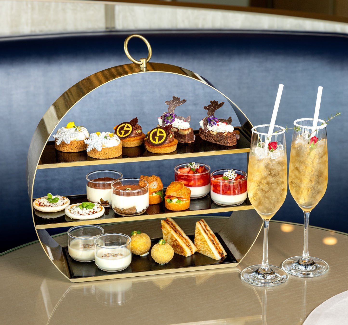 内容:【スイーツ】チョコレートブラウニー / チャイ プラリネ / 柚子 タルト / 苺 パンナコッタ / ティラミス【セイボリー】ミニ マルゲリータ / 揚げパン スモークサーモン / 根セロリ / サフラン アランチーノ / プッタネスカ サンドイッチ【ドリンク】厳選されたアルマーニ / ドルチ ティー、コーヒー等