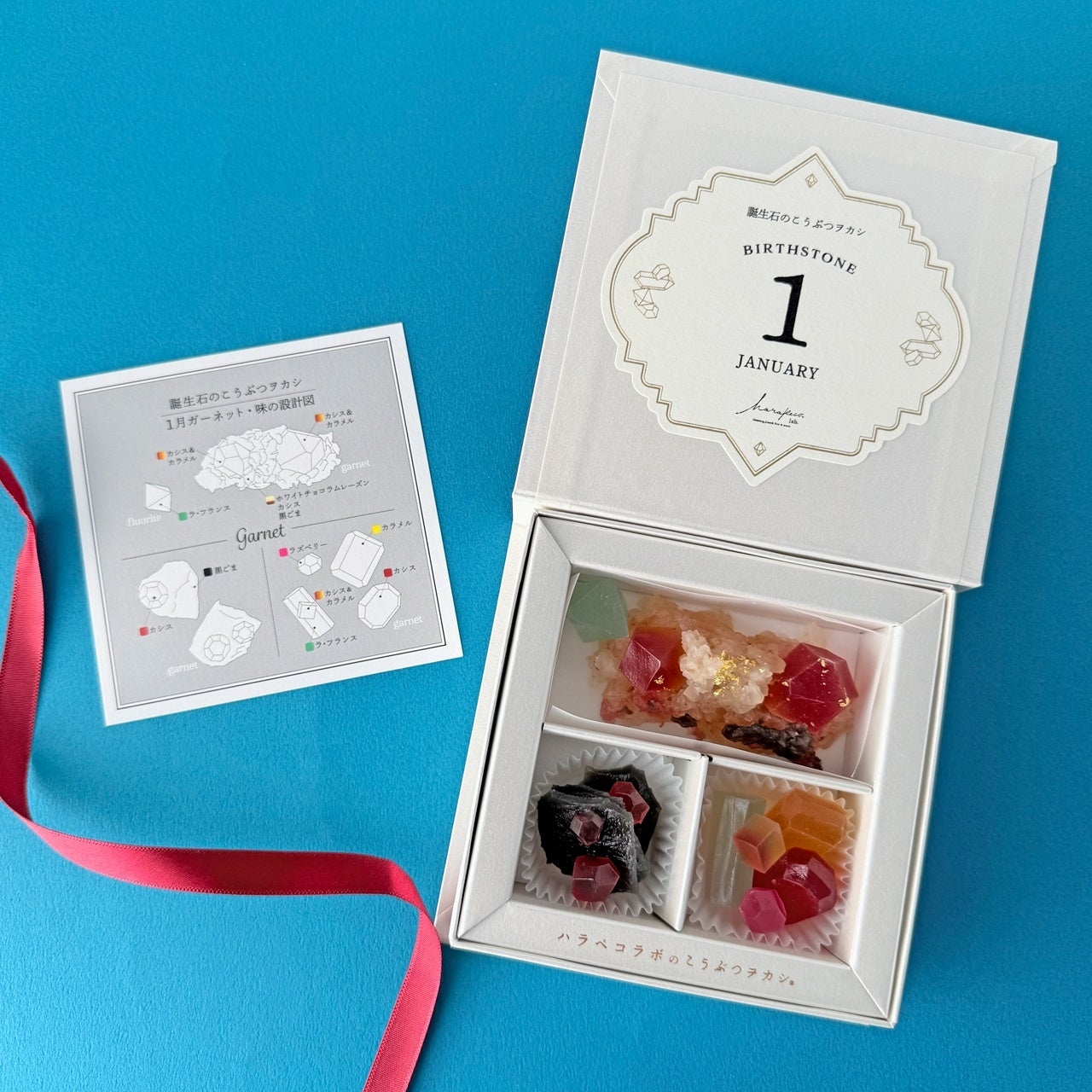 メルティングポットハラペコラボ株式会社(所在地:福岡県福岡市、以下 ハラペコラボ)は、新年を彩るアートな琥珀糖「1月のこうぶつヲカシ-誕生石Garnet-」を、2025年12月19日より販売開始しました。公式オンラインショップ、ハラペコラボ福岡店他にて購入可能、全国発送いたします。年始のご挨拶に。1月生まれの大切な人へ。自分へのご褒美に。美しく輝く宝石のようなお菓子をお楽しみいただけます。