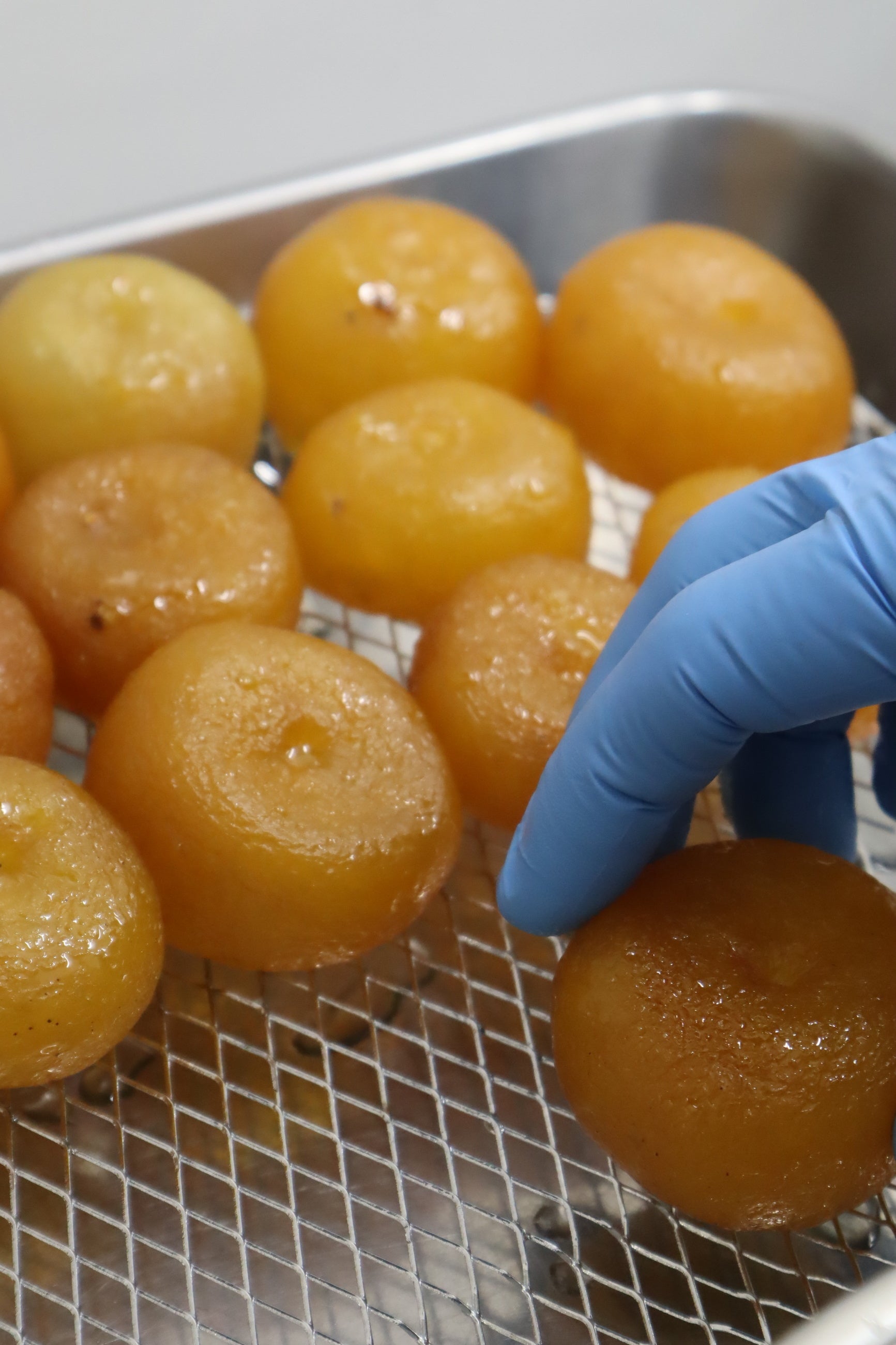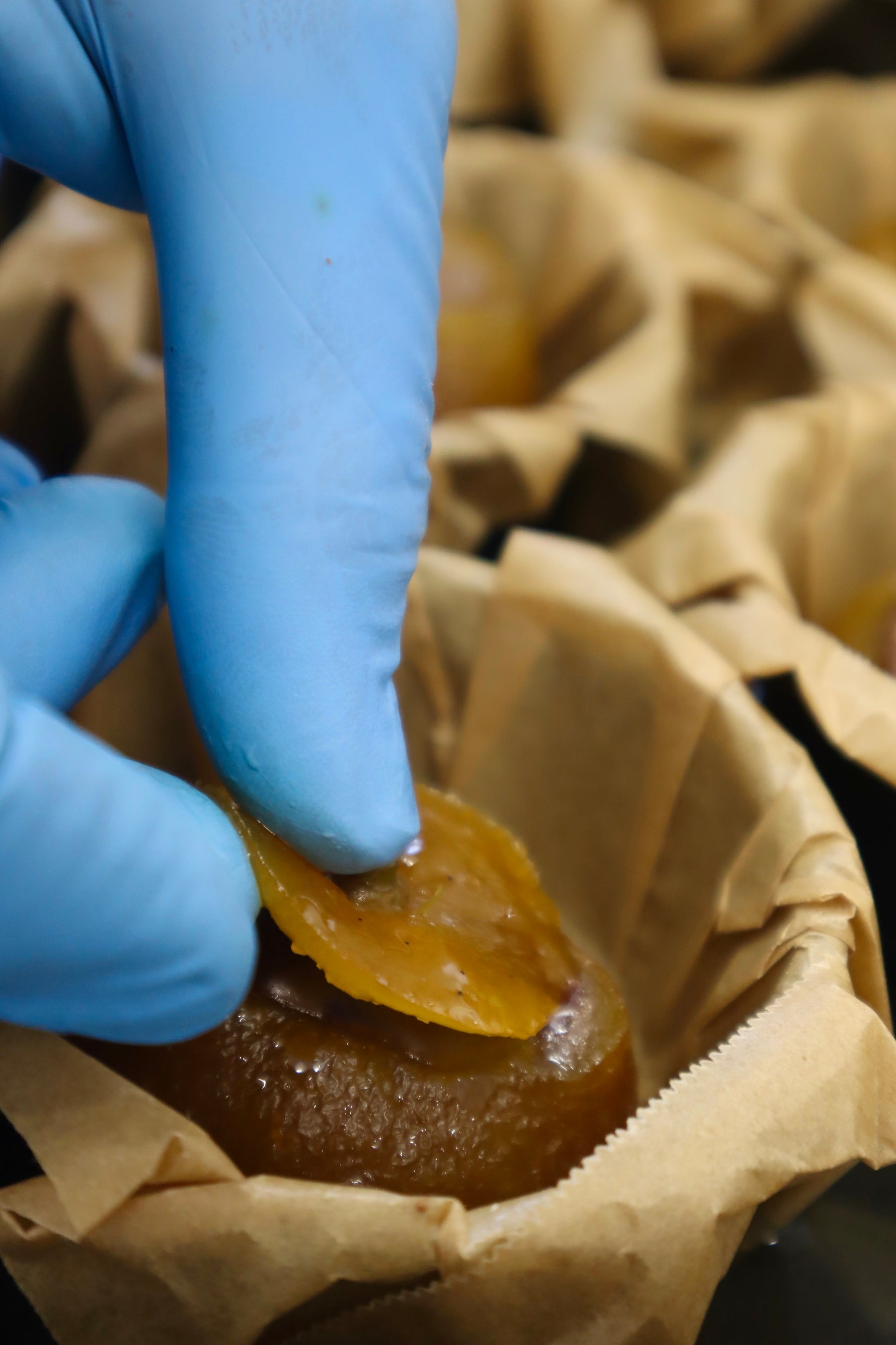 一つひとつ丁寧に中身をくり抜いた柚子を蜜漬けし、器として使用。