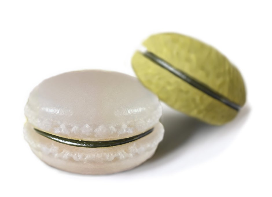 数種類の森のめぐみを使用。着色料不使用で、その植物が持つ色のみで色付けをしたマカロン。