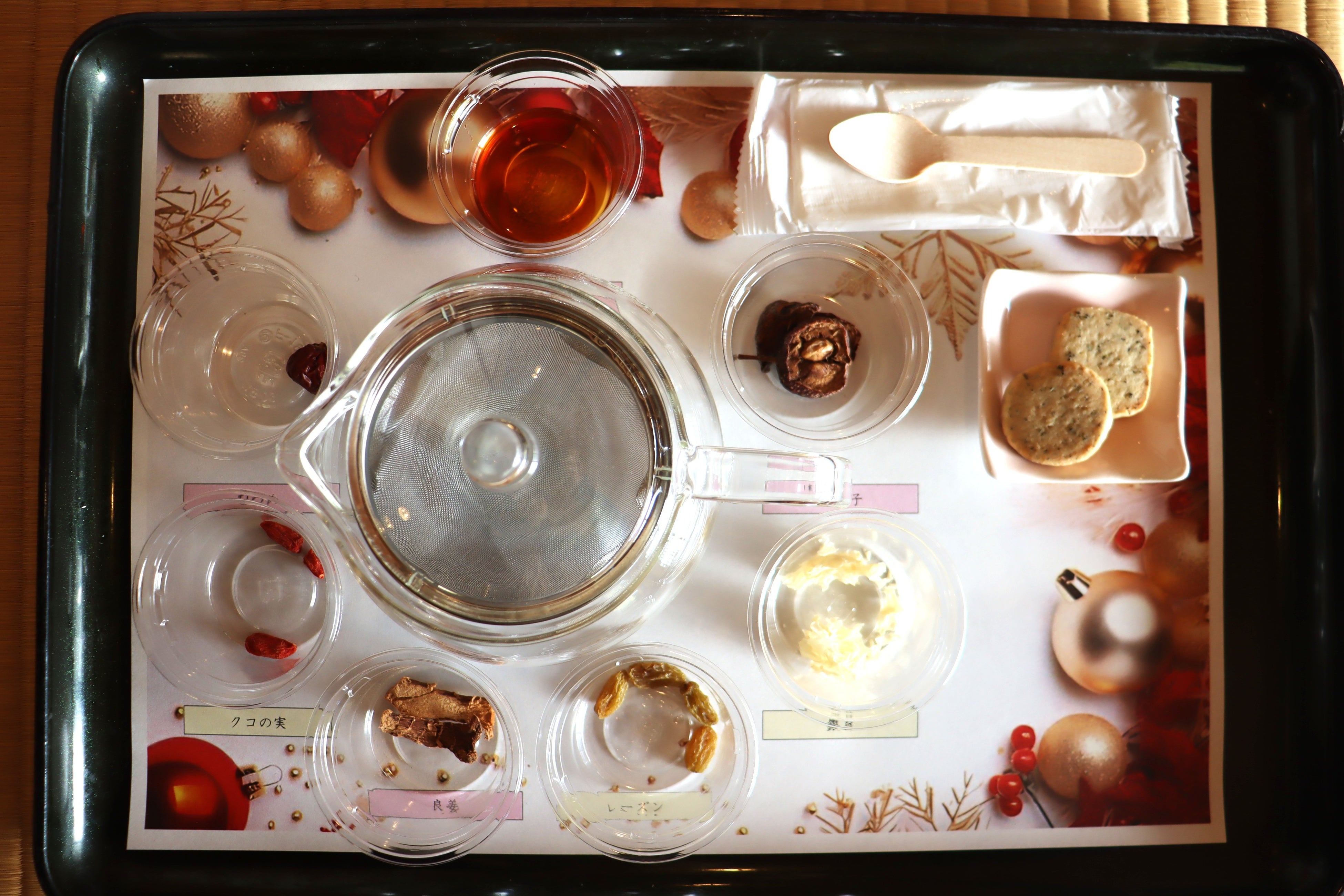 第1回は「薬膳茶でめぐる癒しの1杯」をテーマに、オリジナルブレンドティー体験を実施。気候の変化が大きく、乾燥しがちな秋にぴったりな食材を組み合わせたブレンドティーを作成しました。