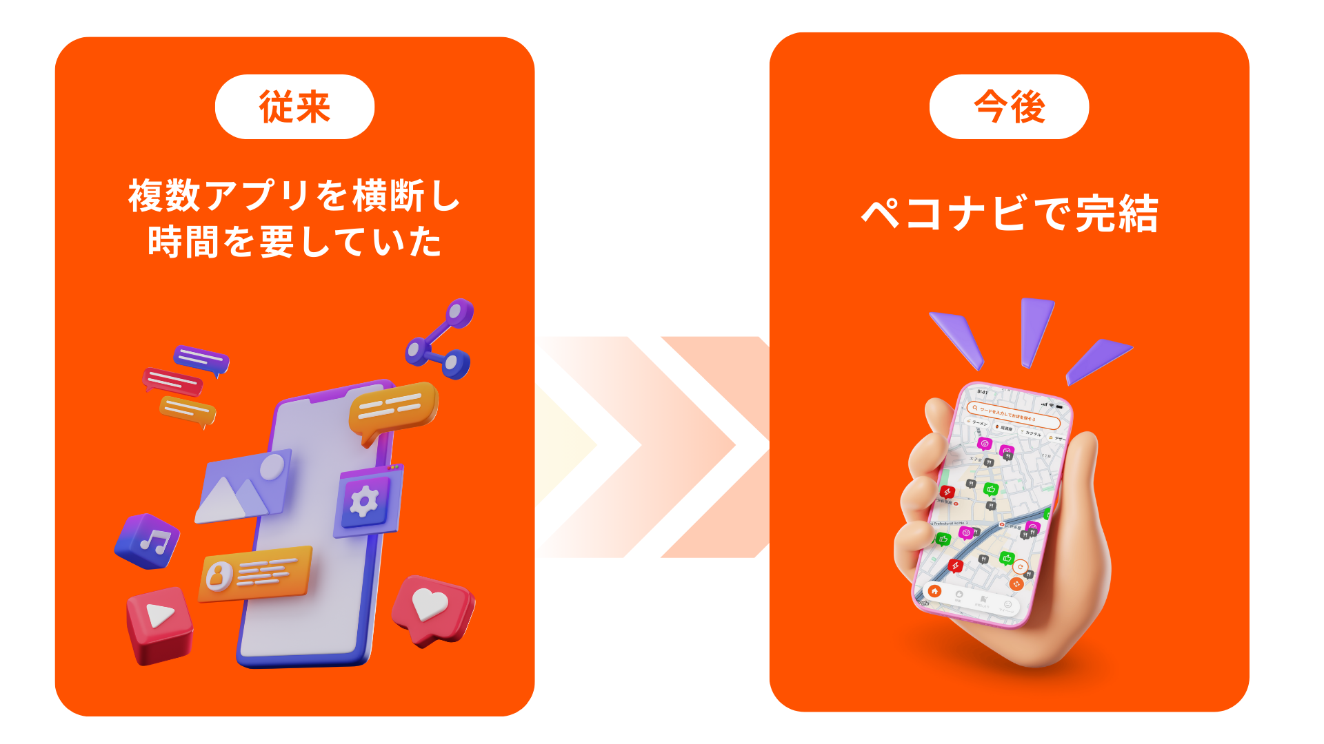 ペコナビは、こうした自然な流れを一つの画面にまとめ、動画で惹かれたお店を、比較から来店判断までスムーズにつなげます。
