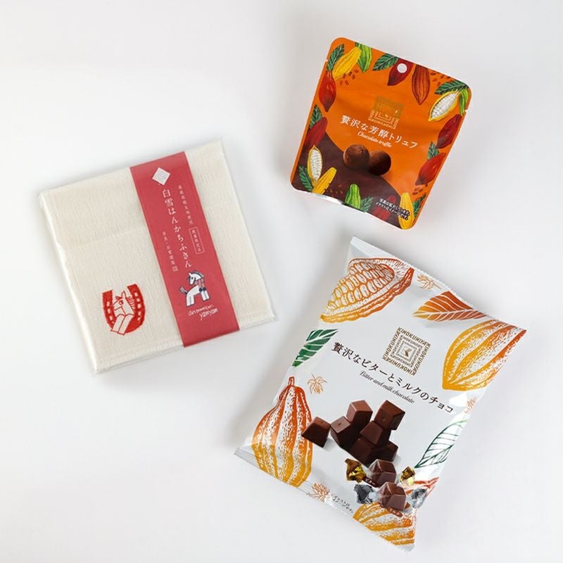 新年のご挨拶に — 贅沢チョコレート&白雪はんかちふきんセット【オンラインストア限定】