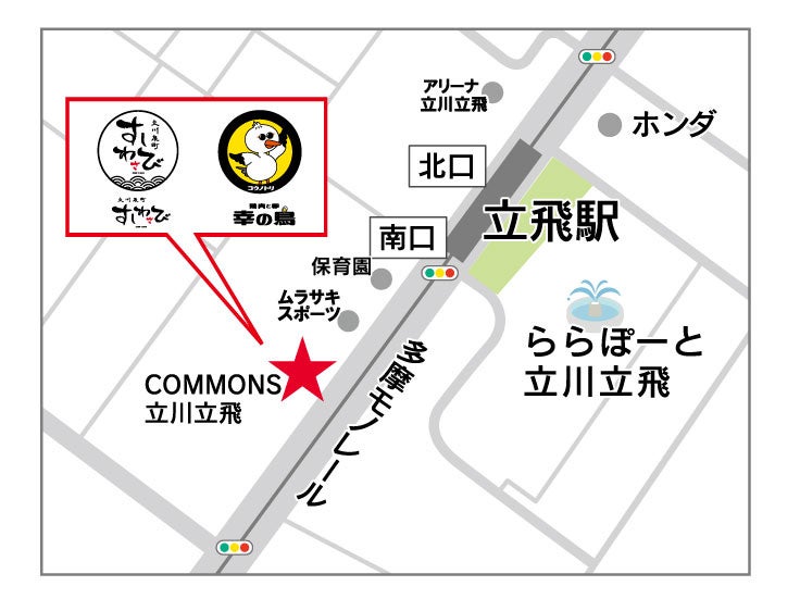 住 所:〒190-0015 東京都立川市泉町935番27 COMMONS(コモンズ)立川立飛内