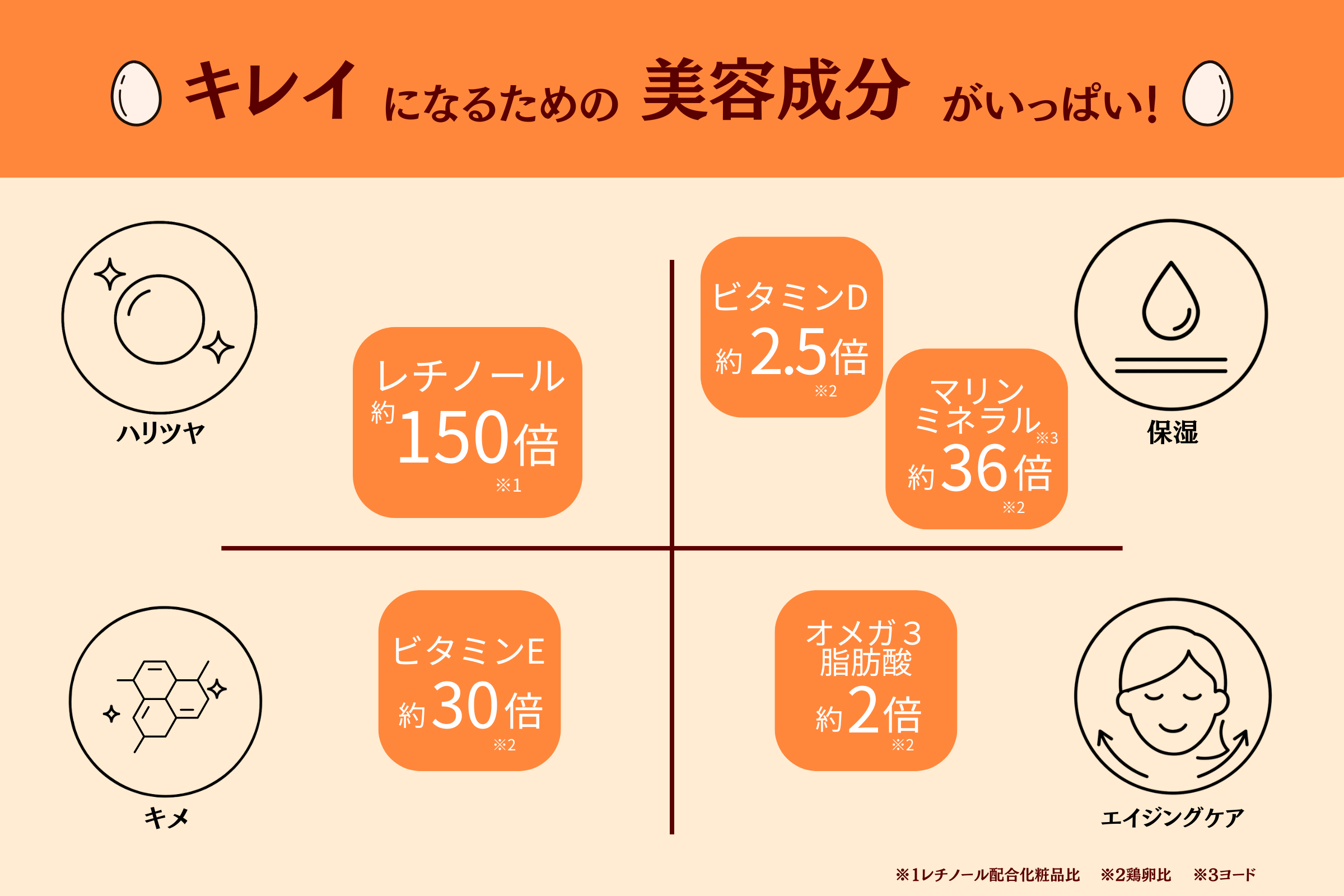 レチノールを1個当たり64㎍含有(レチノール配合化粧品と比べ約150倍の高濃度)