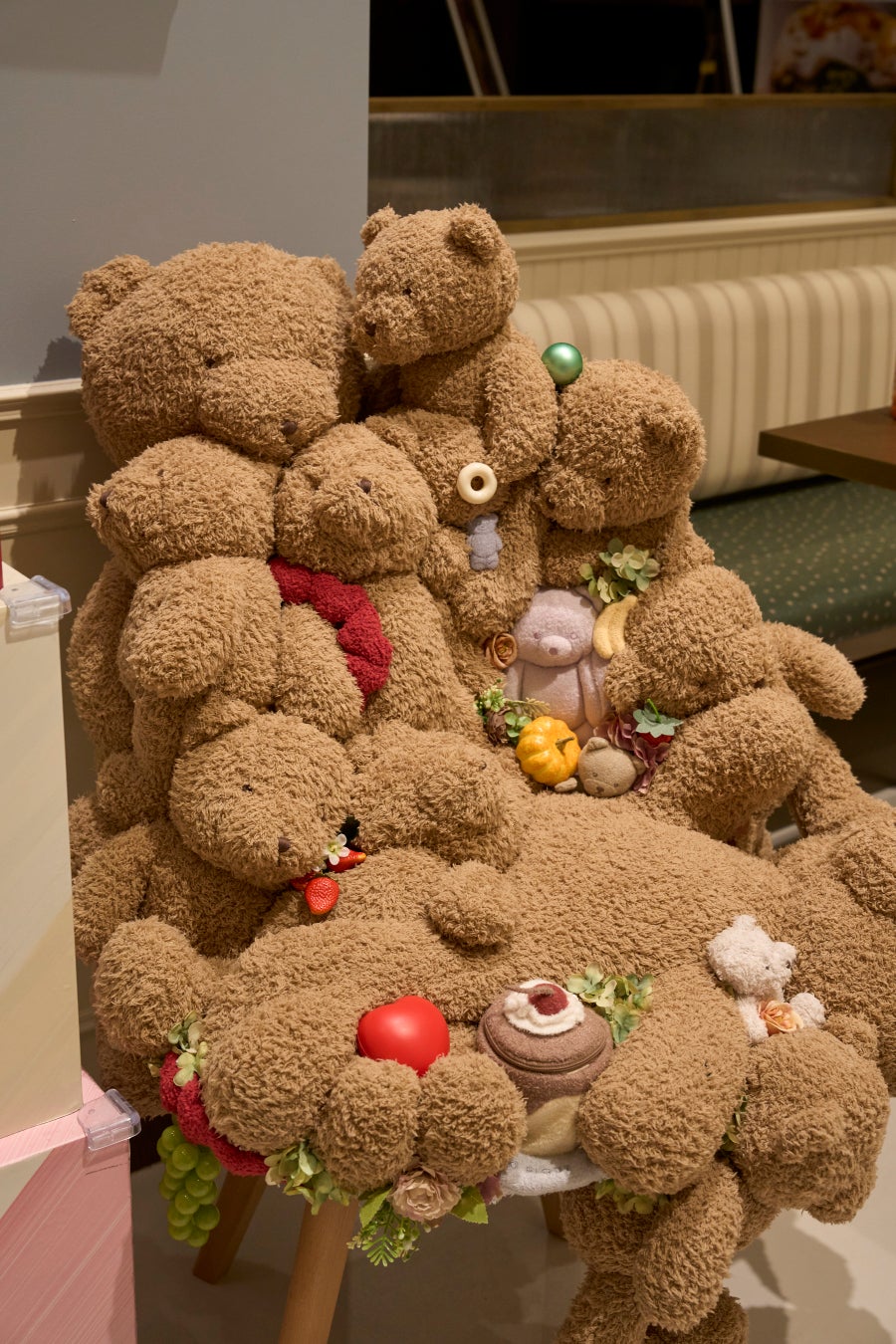 渋谷店の店内にはクマモチーフのシャンデリアやチェアのほか、各所に思わず撮影したくなるフォトスポットを多数ご用意。加えて今のホリデーシーズンに合わせて大きなクリスマスツリーをメインとしたホリデー装飾も皆様をお出迎え。お買い上げのメニューとともに店内のさまざまな場所で思い思いに撮影されるお客様も多く、連日にぎわいを見せています。