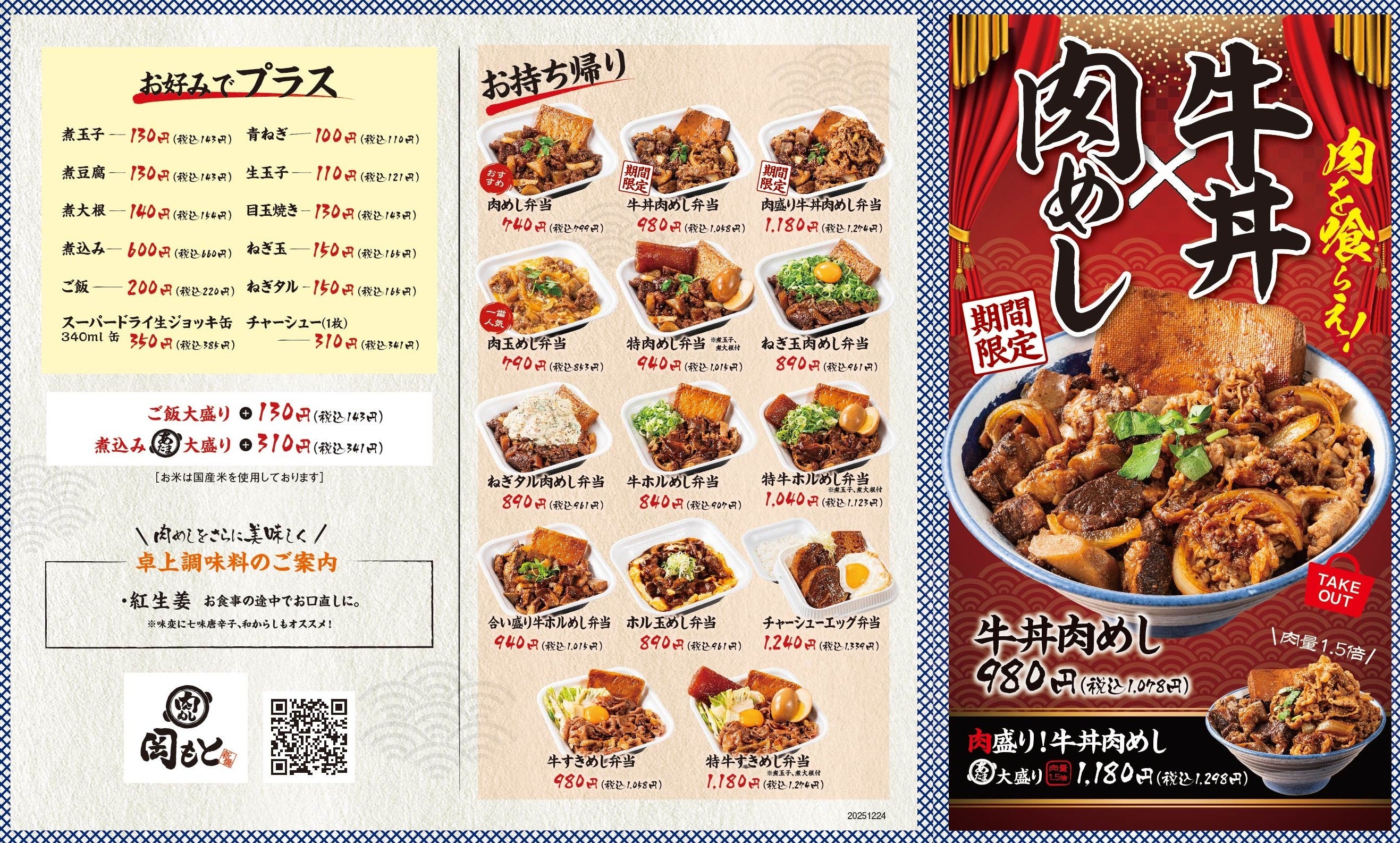 とんかつ専⾨店「かつや」などを展開するアークランドサービスホールディングス株式会社の⼦会社、株式会社トビラダイニング(本社:東京都千代田区/代表:布施 裕康)は、「肉めし岡もと」にて、2025年12月24日(水)より期間限定メニュー「牛丼肉めし」の販売を開始いたします。