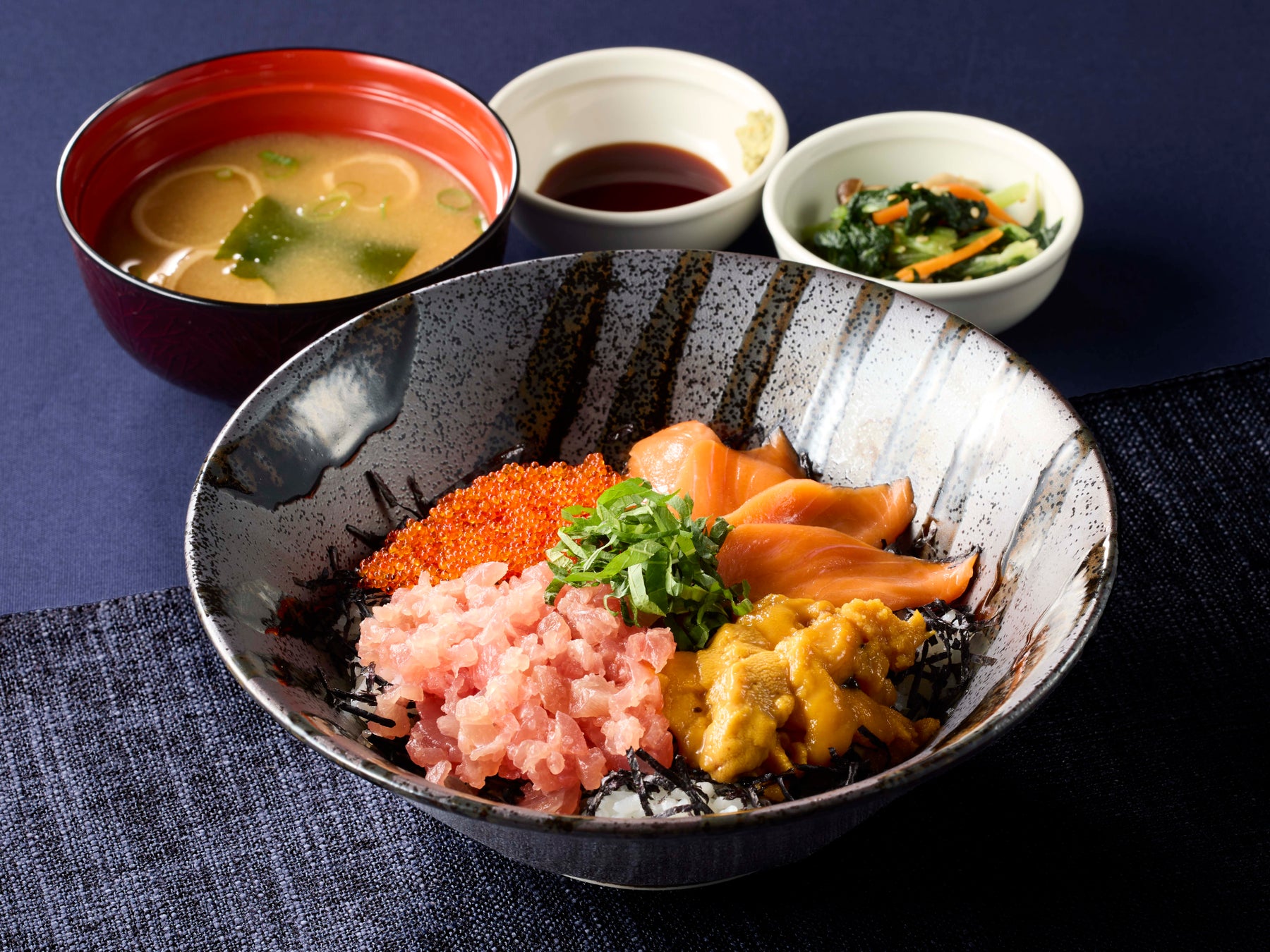 同時に登場する「濃厚ウニの豪華四色丼」は、ミョウバン不使用のウニや粗めにたたいたまぐろ、旨みのあるサーモン、とびっこを盛り付けた豪華な海鮮丼です。また、濃厚なウニをお手軽にお楽しみいただけるよう、ウニだけをトッピングした「ウニ小丼~みそ汁付き~」もご用意しました。