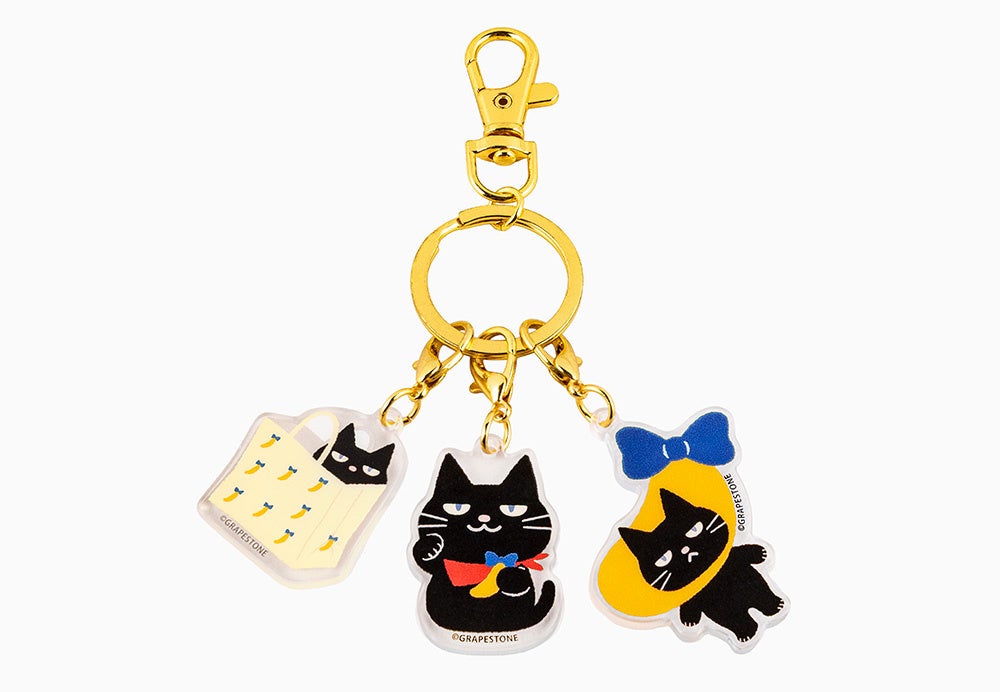 3種の可愛いアクリルチャームがついたキーホルダーです。「東京ばな奈」の紙袋に入ったり、手招きしたり、被り物をしたり。『東京ばな奈ぶにゃんこ』の愛らしい世界観をたっぷり味わえます。取り外して1つずつ使えるのも嬉しいポイントです。