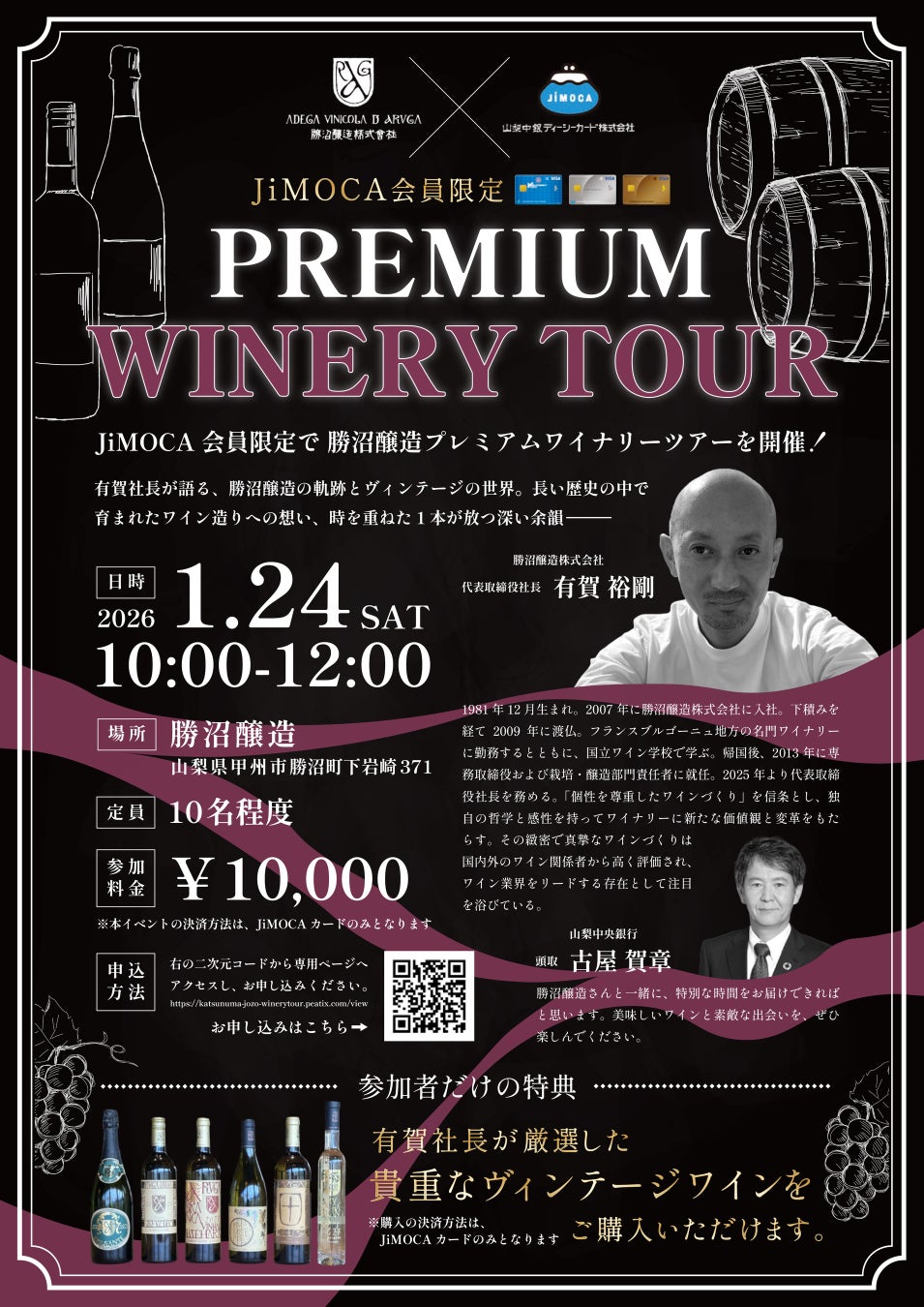 本キャンペーンは、日本が世界に誇るワインブランド「アルガ」シリーズを提供する勝沼醸造において、代表者によるヴィンテージワインの解説と、秘蔵されるプレミアムヴィンテージワインをJiMOCAの会員にご購入いただけるものです。